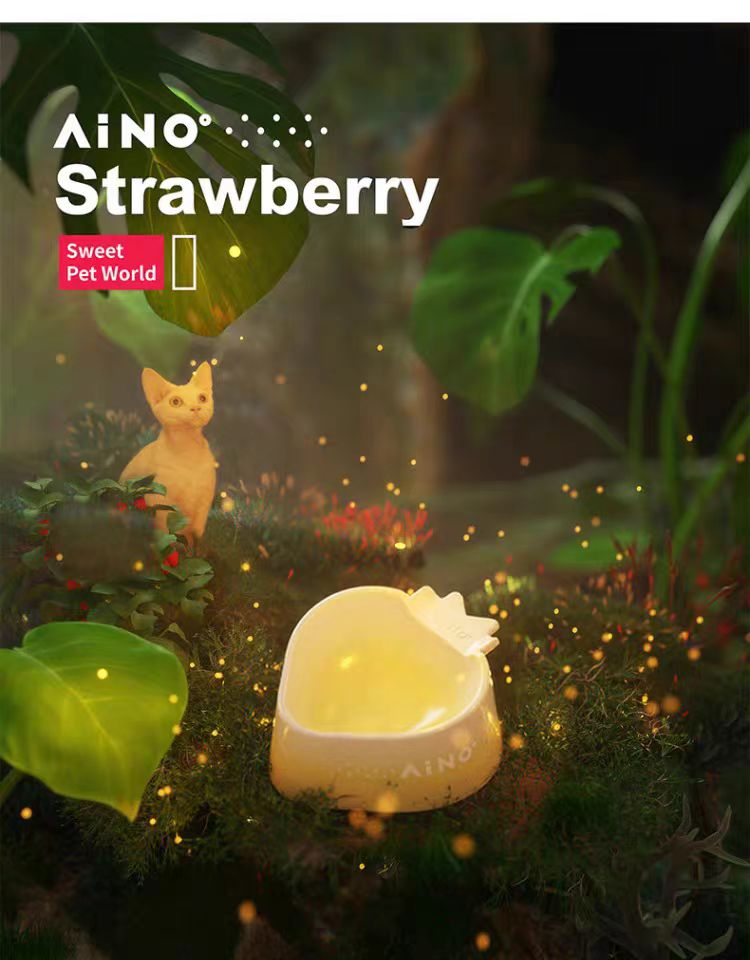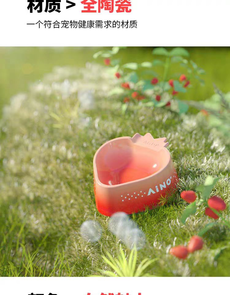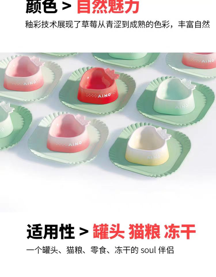 4楼Eubelle欧蓓 爱萌仕草莓慕斯喂食碗 陶瓷猫碗 活动价:58.5元