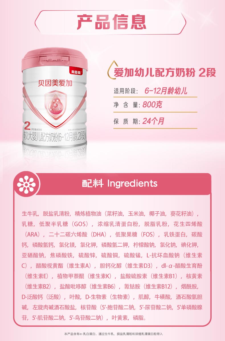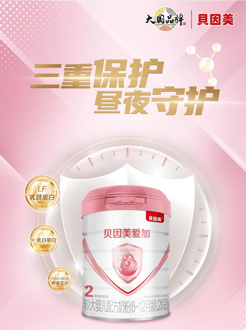贝因美奶粉爱加奶粉2段800g