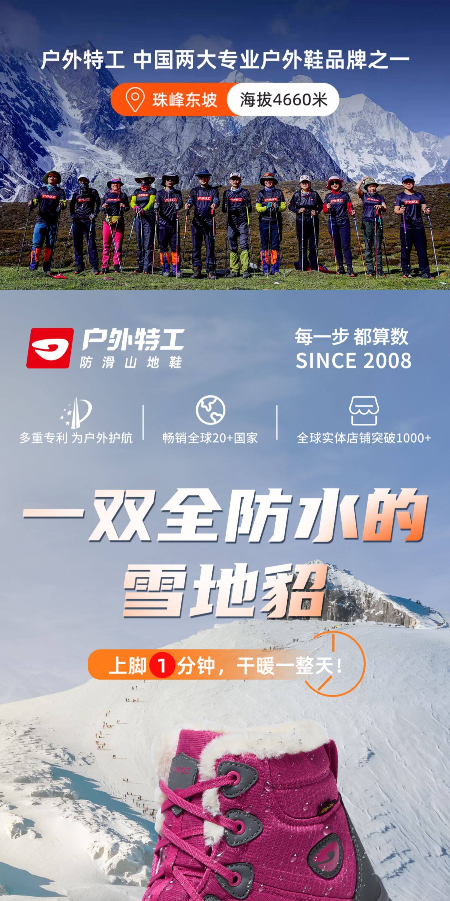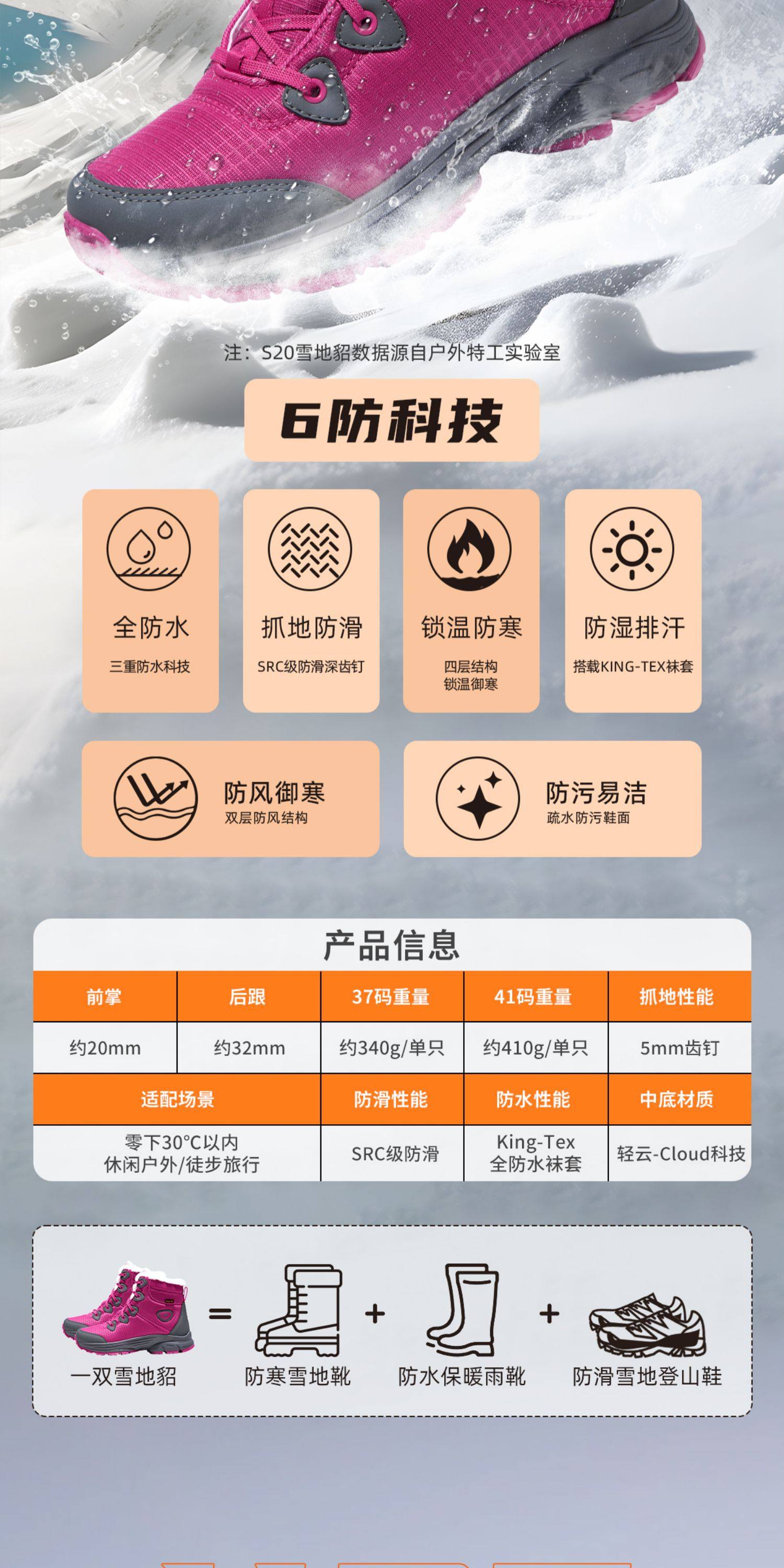 户外特工全防水防滑雪地靴冬季加绒加厚东北哈尔滨极寒防寒棉鞋女S20