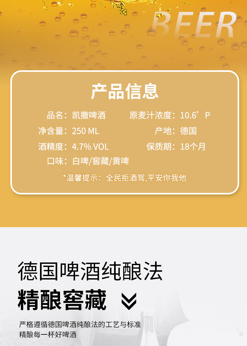 德国凯撒窖藏啤酒 250ml*24罐