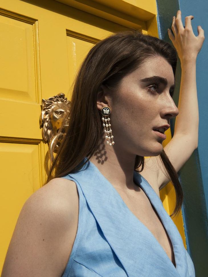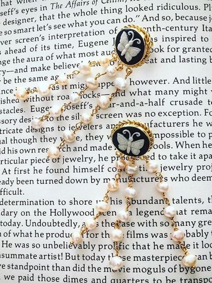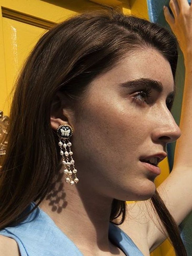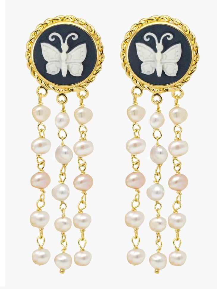 订购6周到|Vintouch-Butterfly Cameo-黑瓷蝴蝶 珍珠流苏 耳环[意大利设计师]