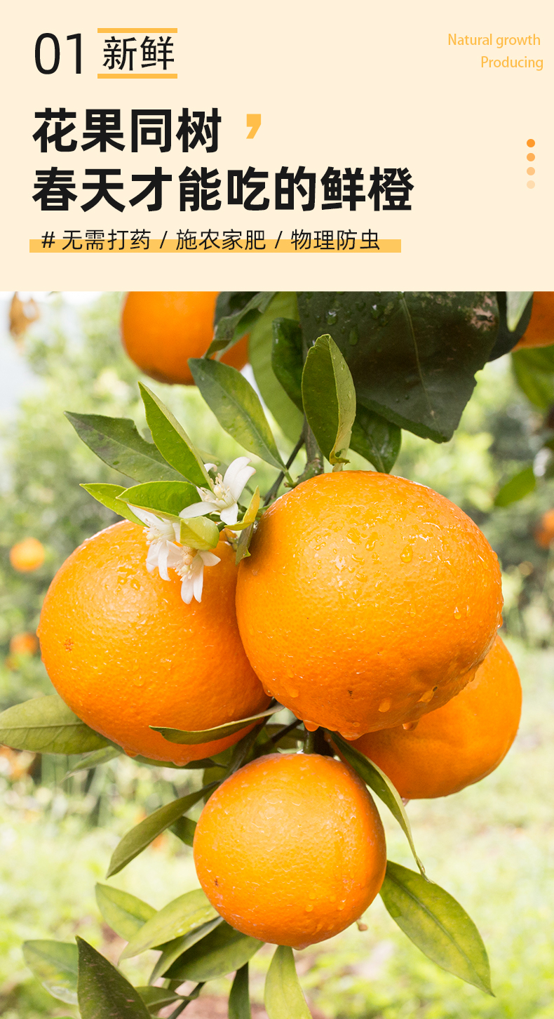 【湖北秭归-伦晚春橙 】果肉细腻,甜润多汁,花果同枝,14个月生长周期 3斤/5斤/9斤家庭装