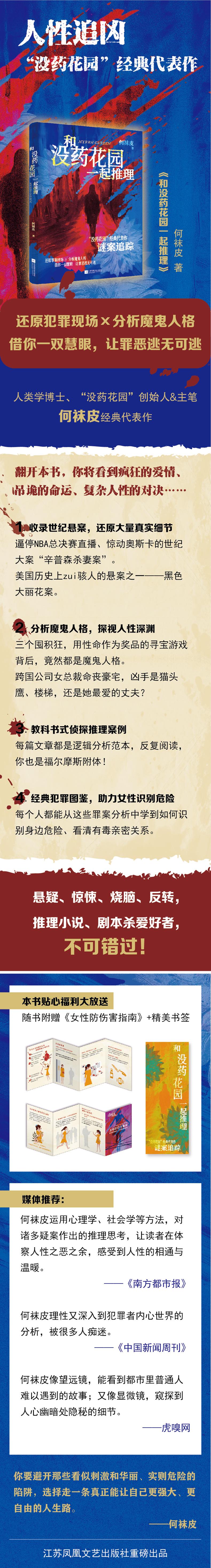 本书系人类学博士、“没药花园”创始人及主笔何袜皮的经典罪案分析代表作,本书所选文章多为在社会上引起大众强烈关注的罪案与悬而未决谜团的分析。其中包括美国辛普森杀妻案、黑色大丽花案等案件的推理和犯罪心理分析。“没药花园”的推理文章,都是从最基本的人性开始分析,把犯罪心理与犯罪可能性娓娓道来,最后推理出的可能性往往不是那个最有噱头的,也不是大家一眼相中的选项,却是细想最有道理的。何袜皮强大的推理能力和资料整合能力,让她总能洞察常识之外的细枝末节。另外,作为人类学博士,何袜皮出类拔萃的地方在于,她始终关注的是人本身,她的文章始终充满着浓郁的人文关怀。
