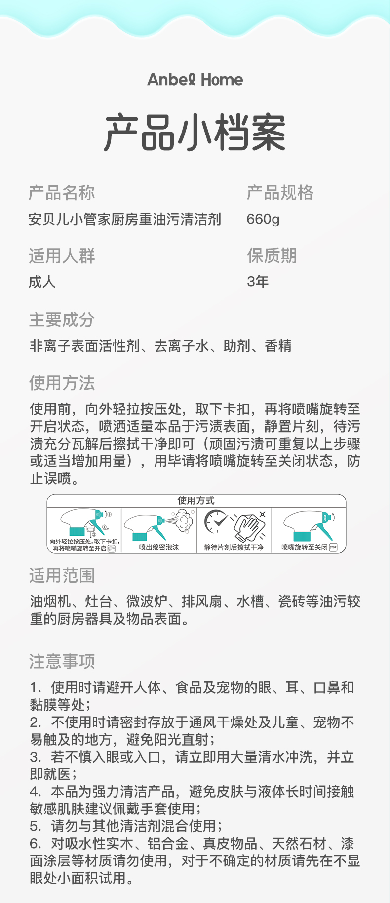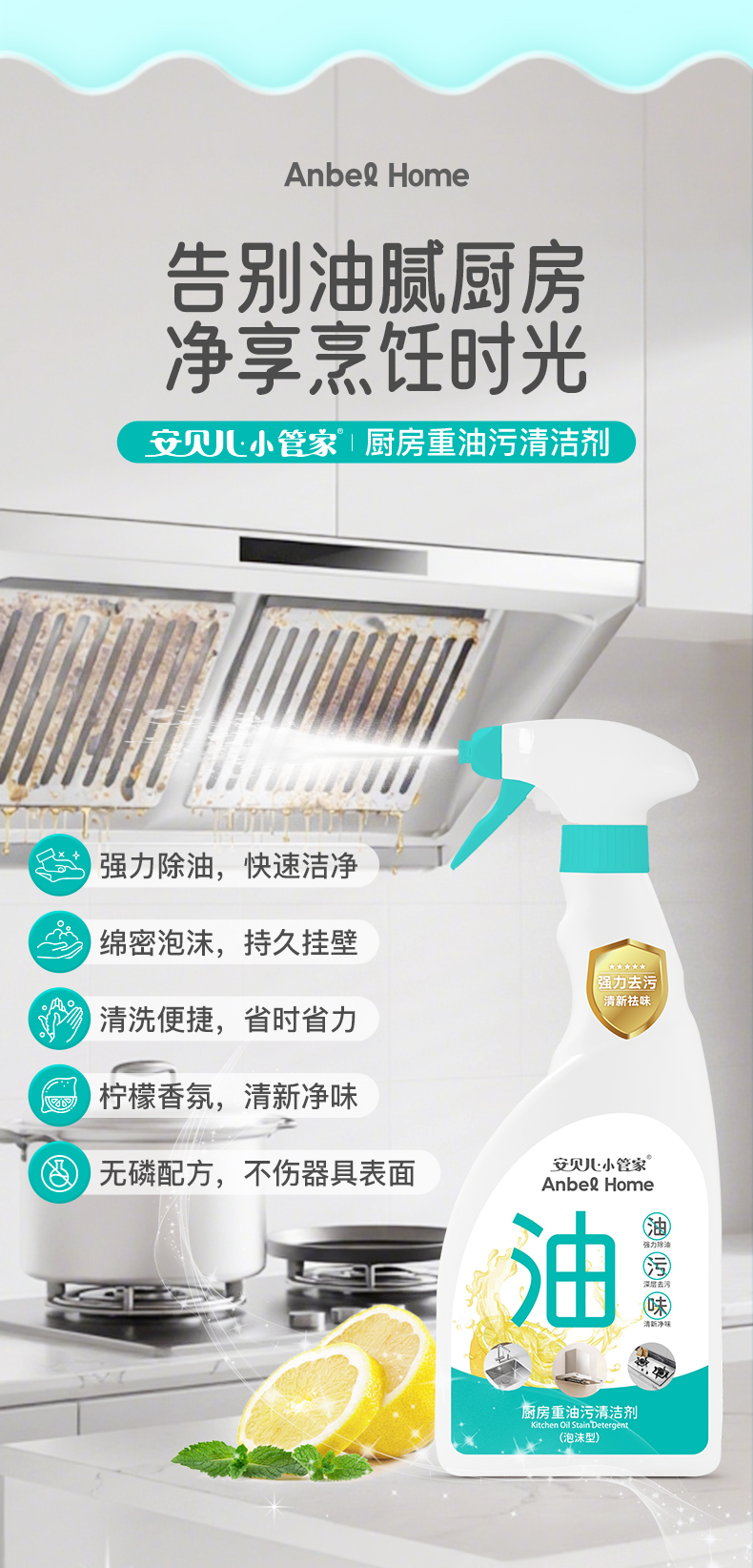安贝儿厨房重油污清洁剂(泡沫型)两瓶装660g*2