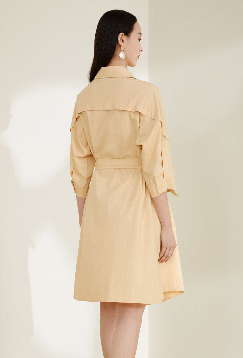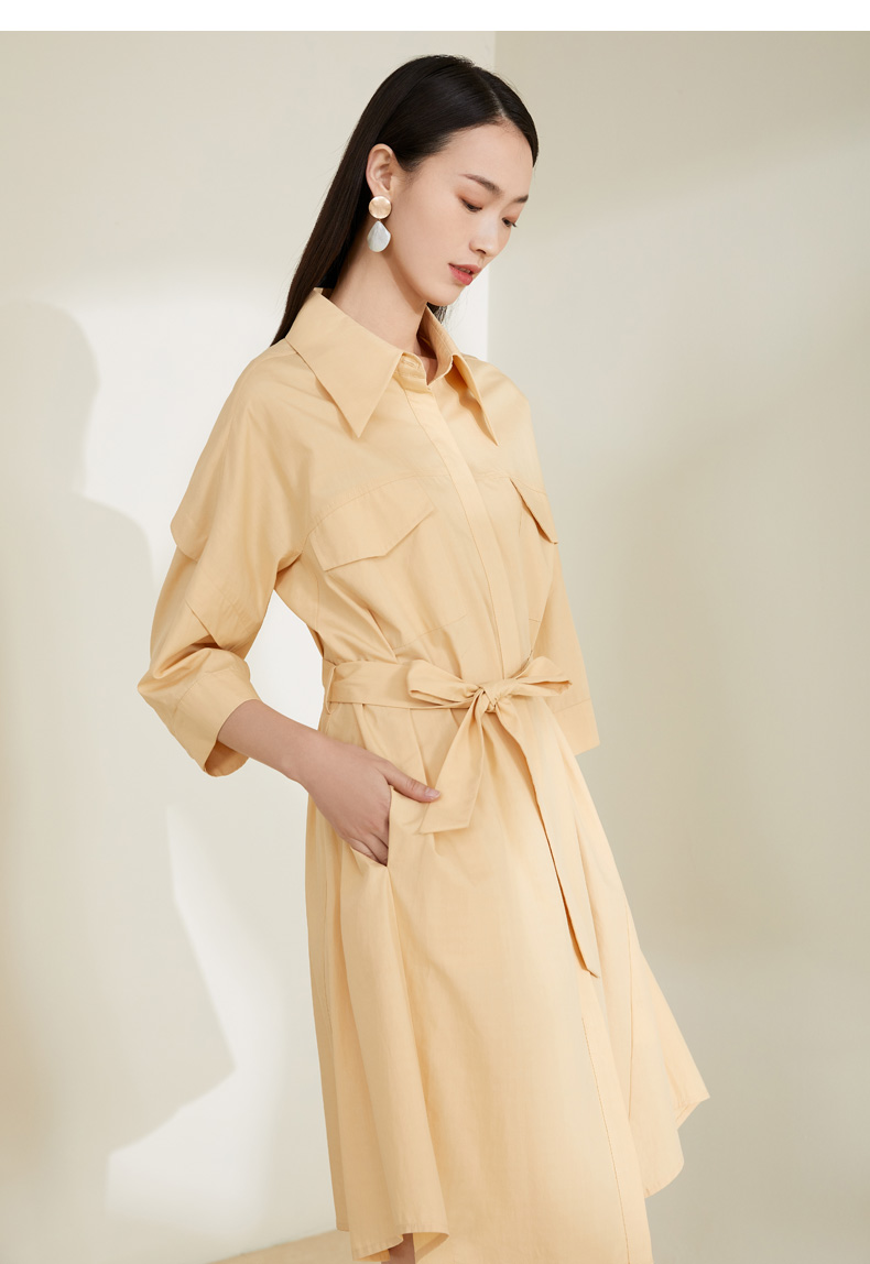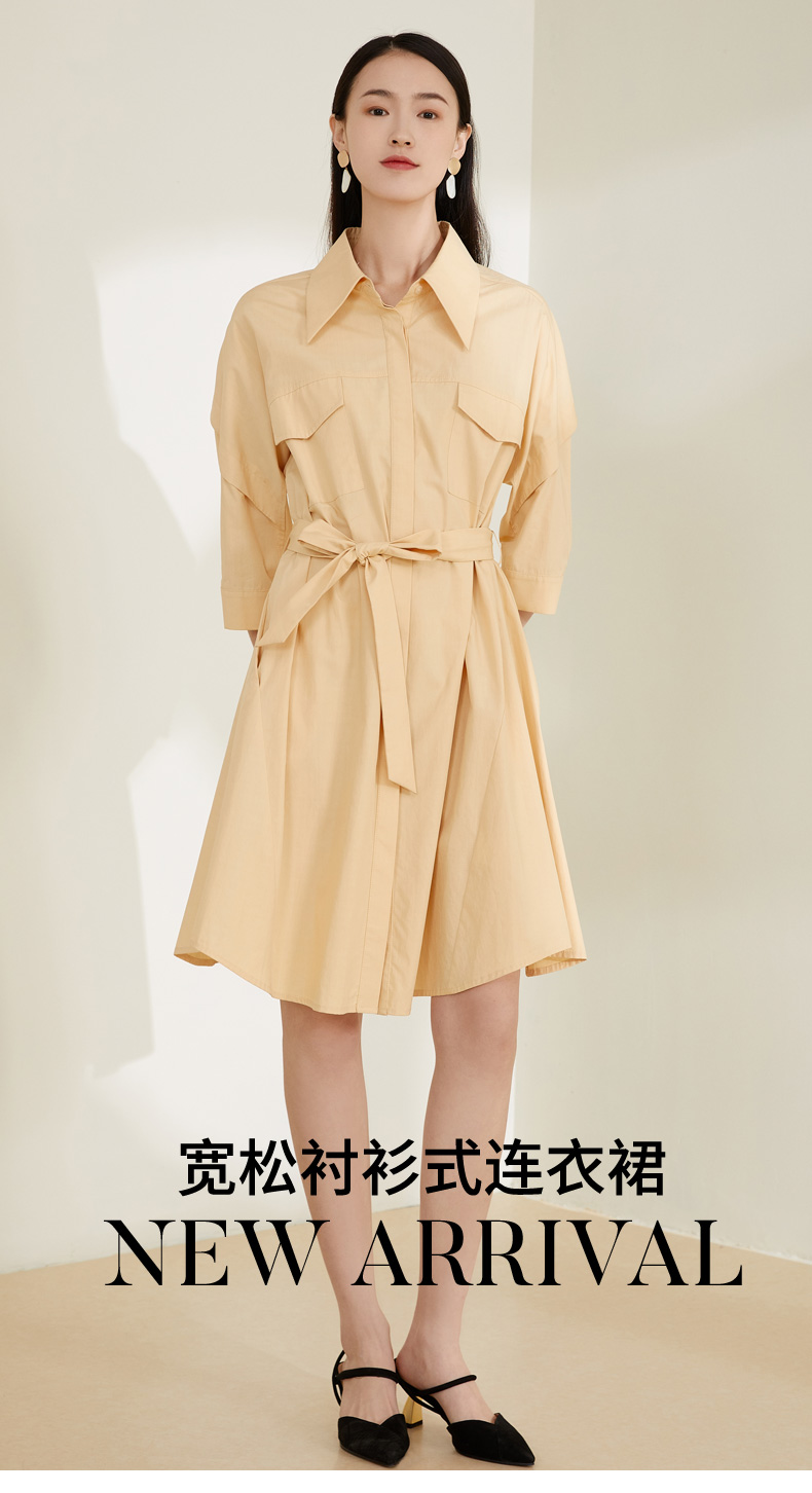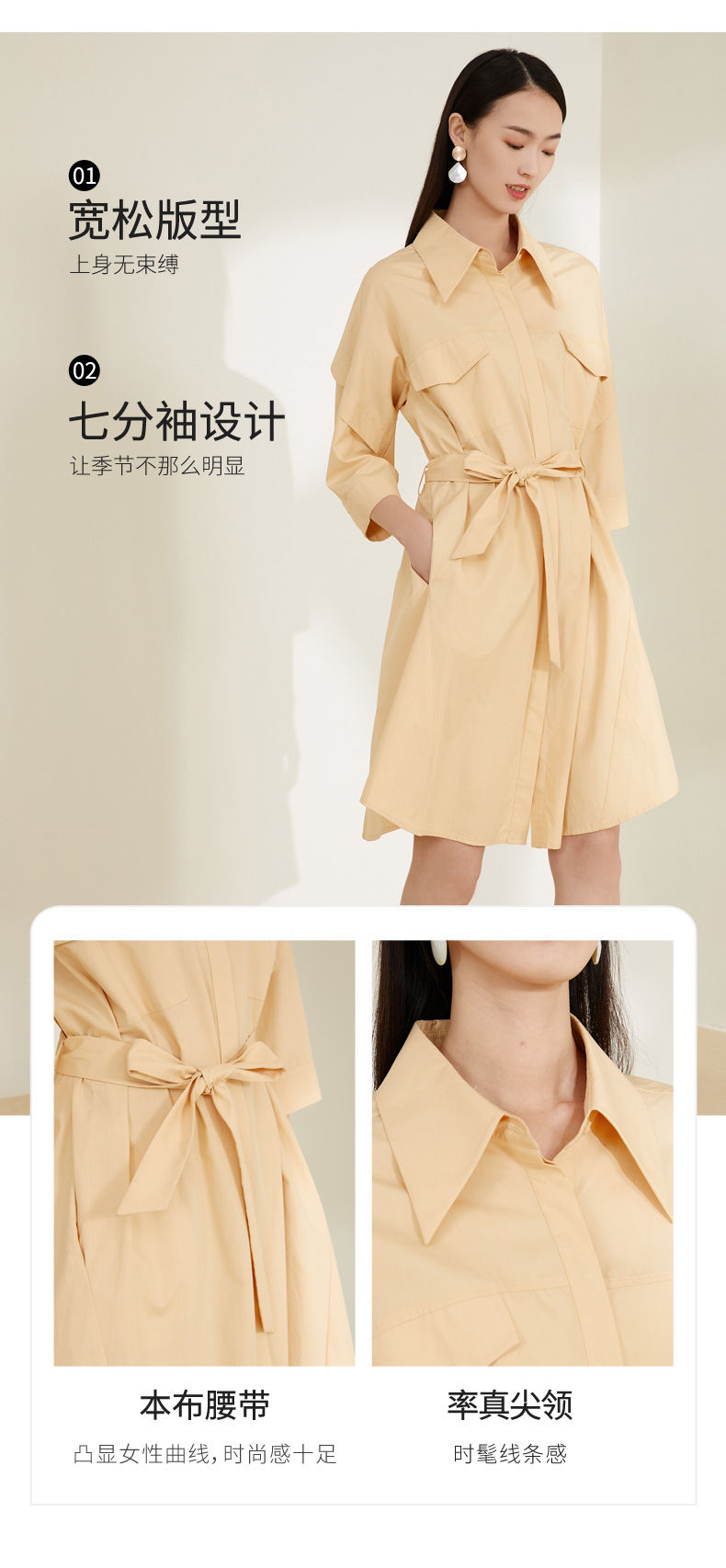 玳莎连肩袖宽松连衣裙2022新品衬衫式收腰显瘦七分袖裙子女 CA35201