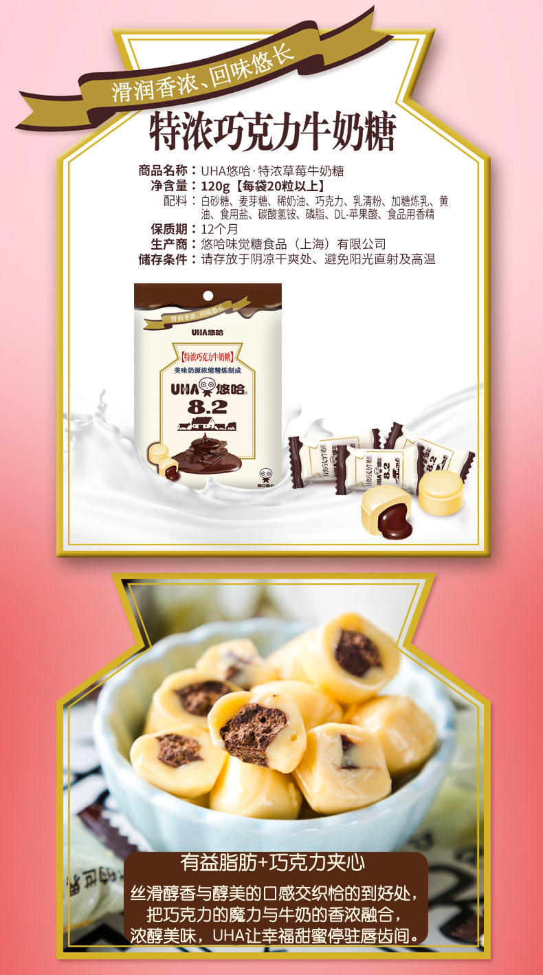 UHA悠哈奶糖 特浓巧克力味102g/袋 糖果休闲零食牛奶糖