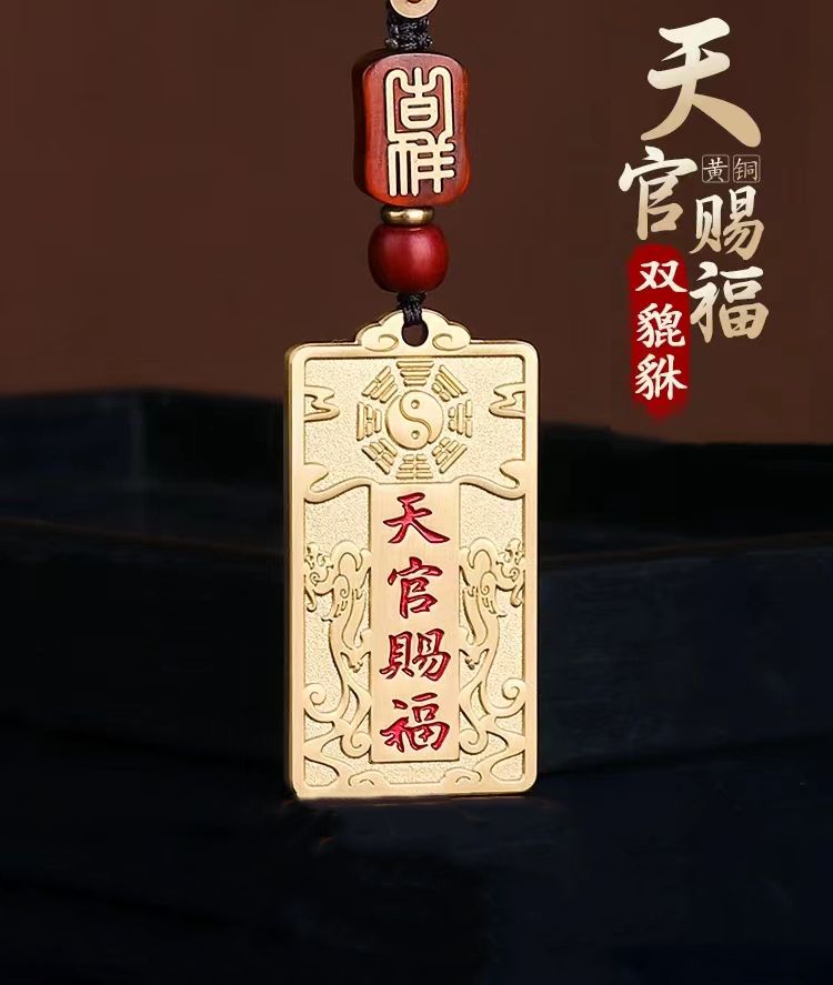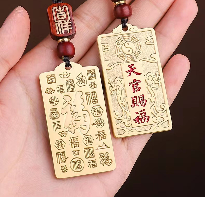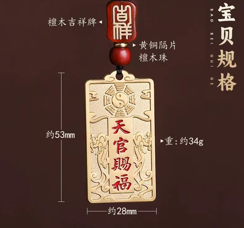 天官赐福黄铜车挂吊坠,实心黄铜,精雕细选