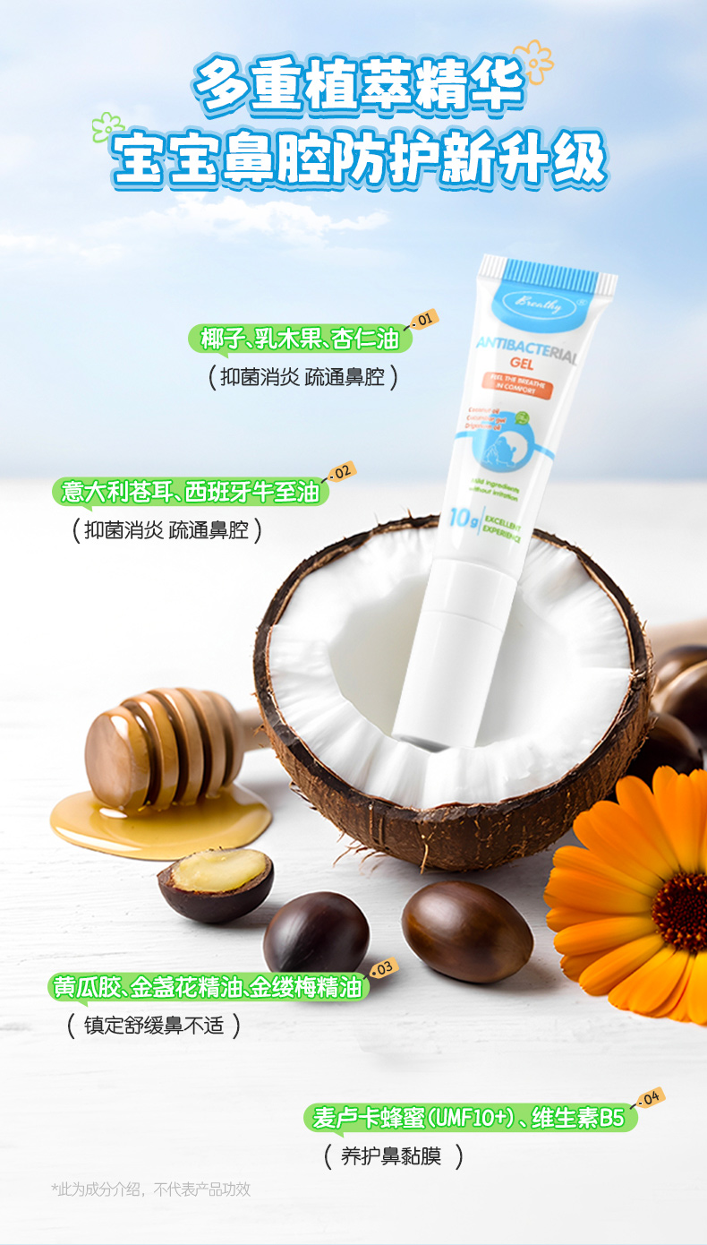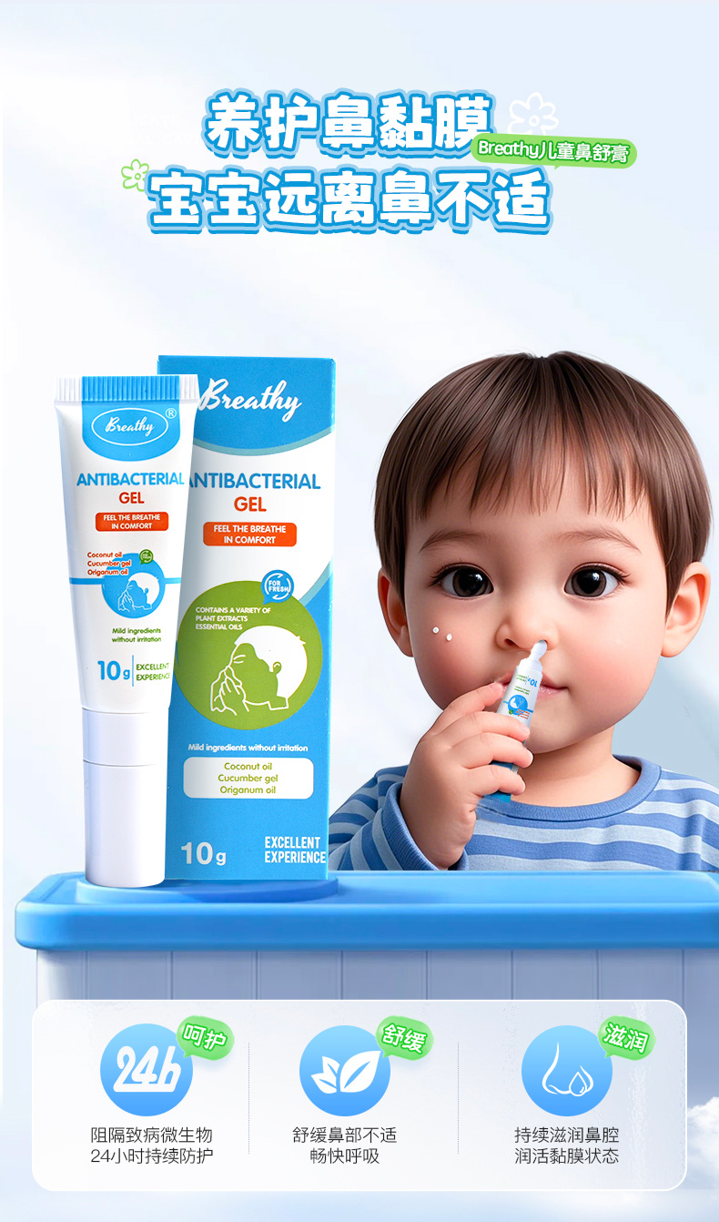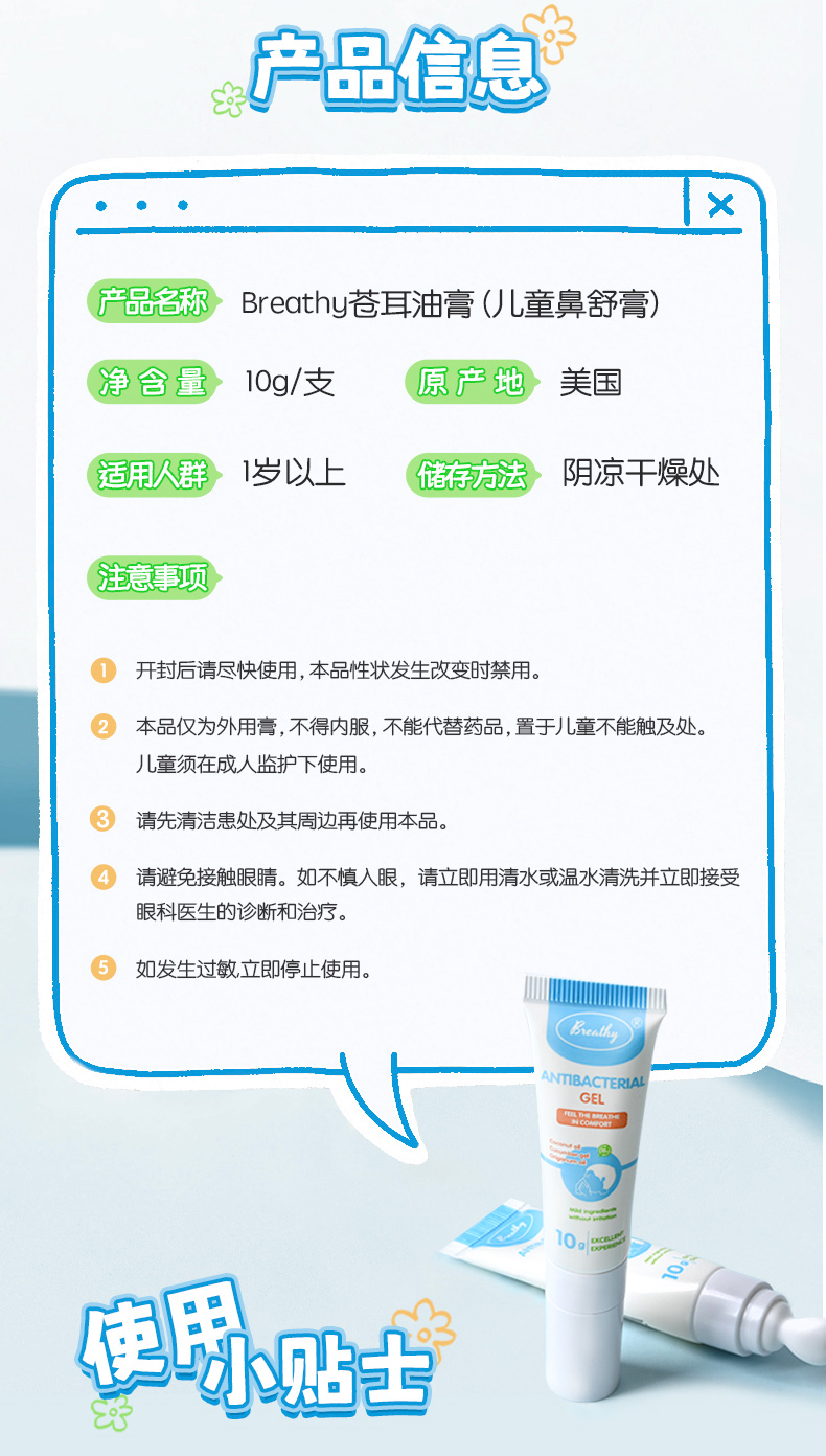 美国Breathy儿童鼻舒膏 守护宝宝自然畅快呼吸 鼻塞鼻痒流鼻涕 温和不刺激 安心植物配方 1岁+宝宝适用 不含冰片樟脑