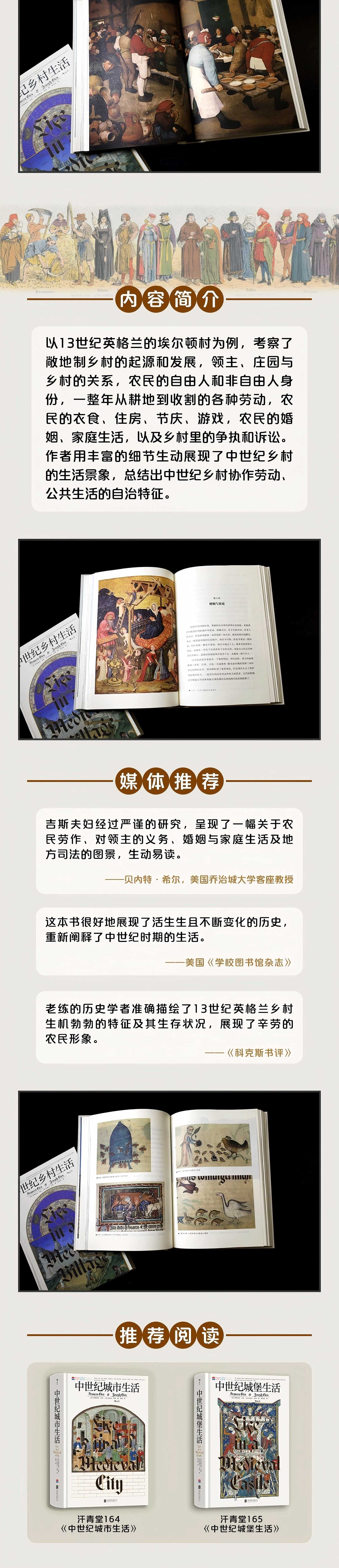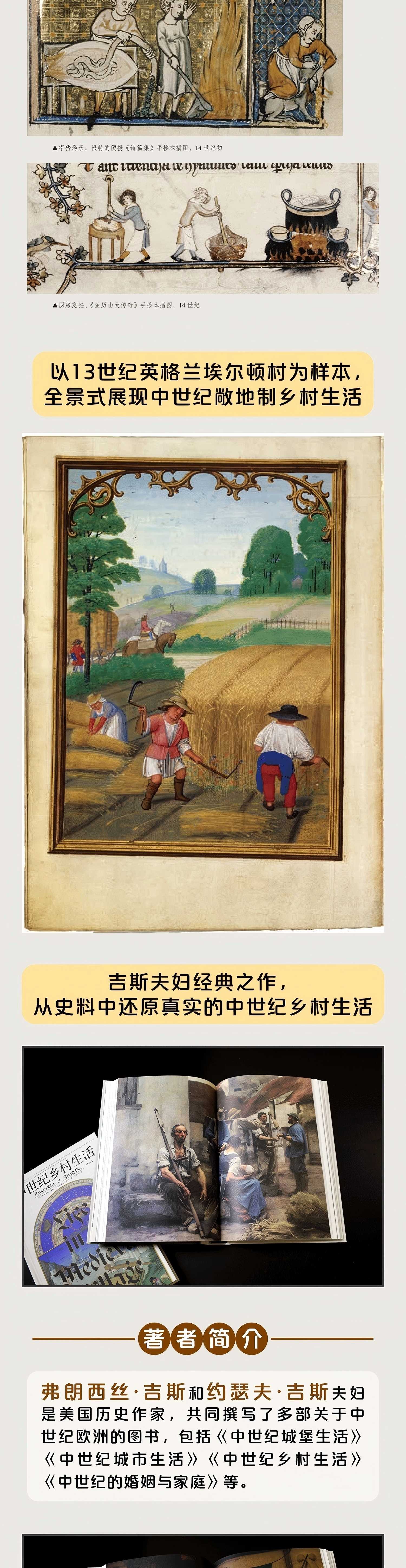 吉斯夫妇经过严谨的研究,呈现了一幅关于农民劳作、对领主的义务、婚姻与家庭生活及地方司法的图景,生动易读。