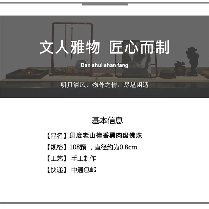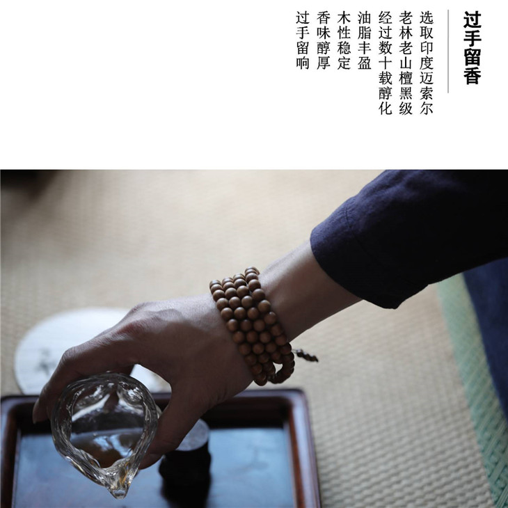三界印度老山檀香佛珠手串心经佛珠手串项链108颗男女款手串