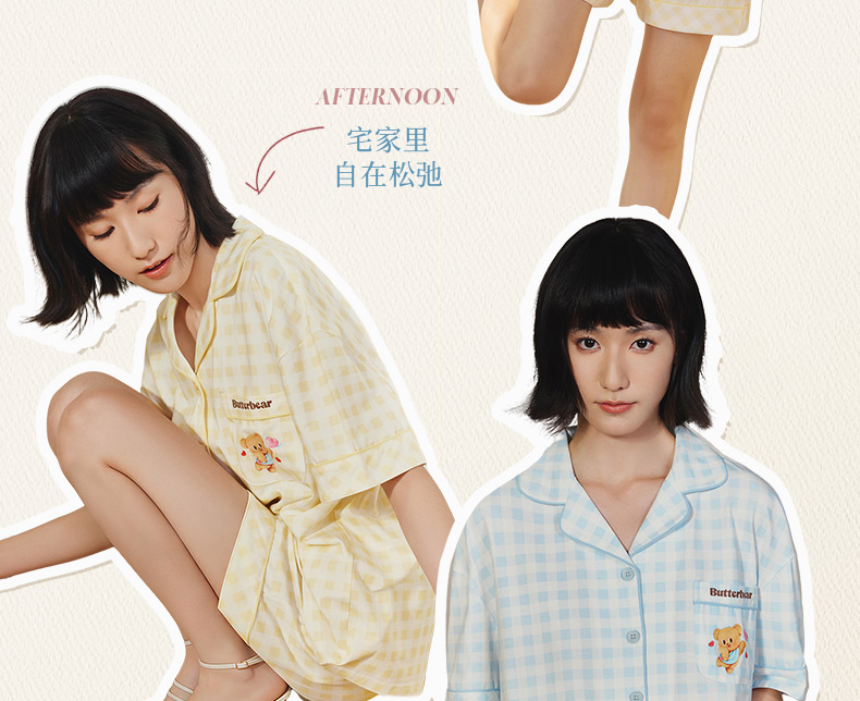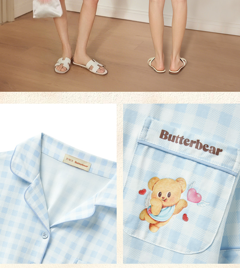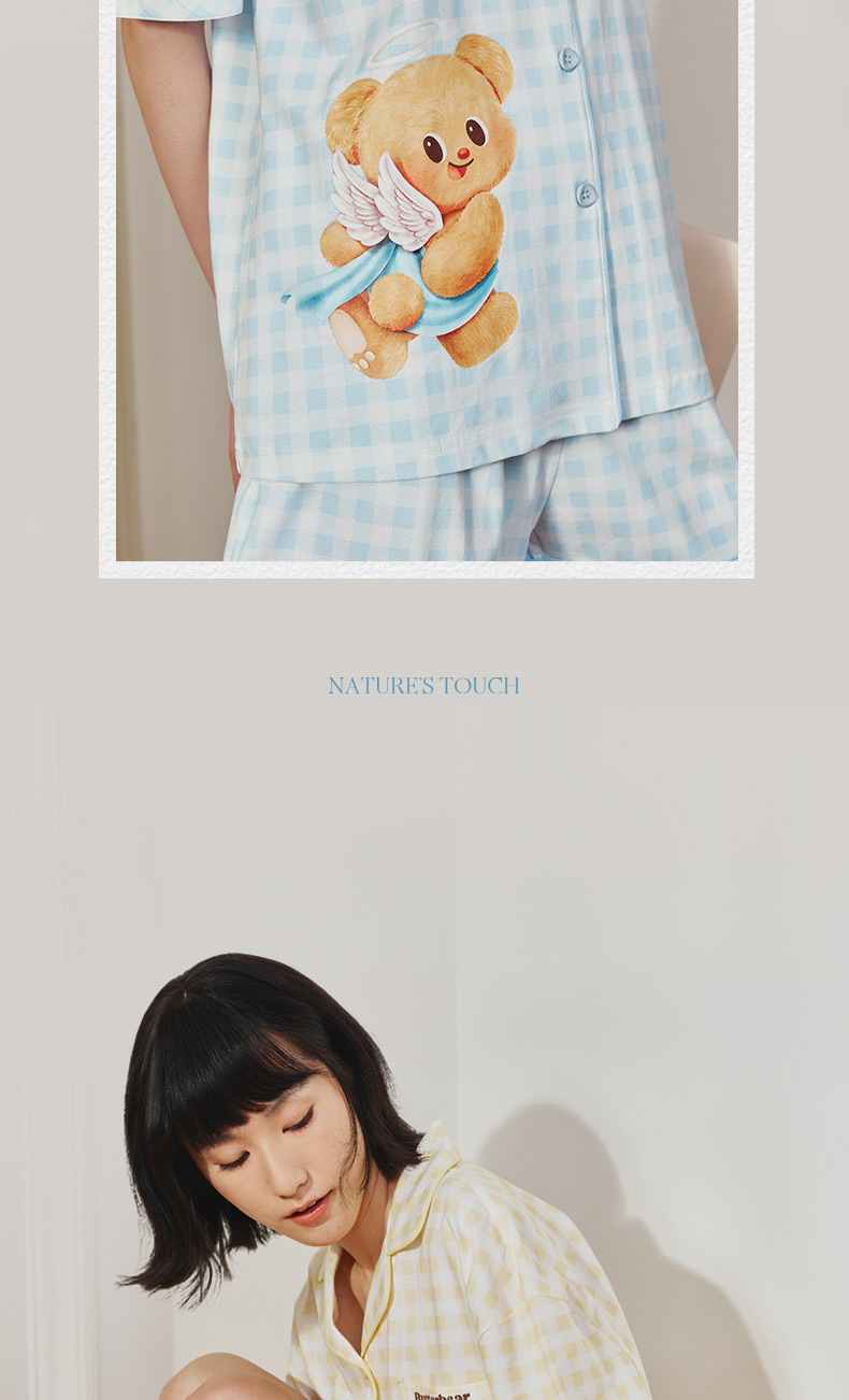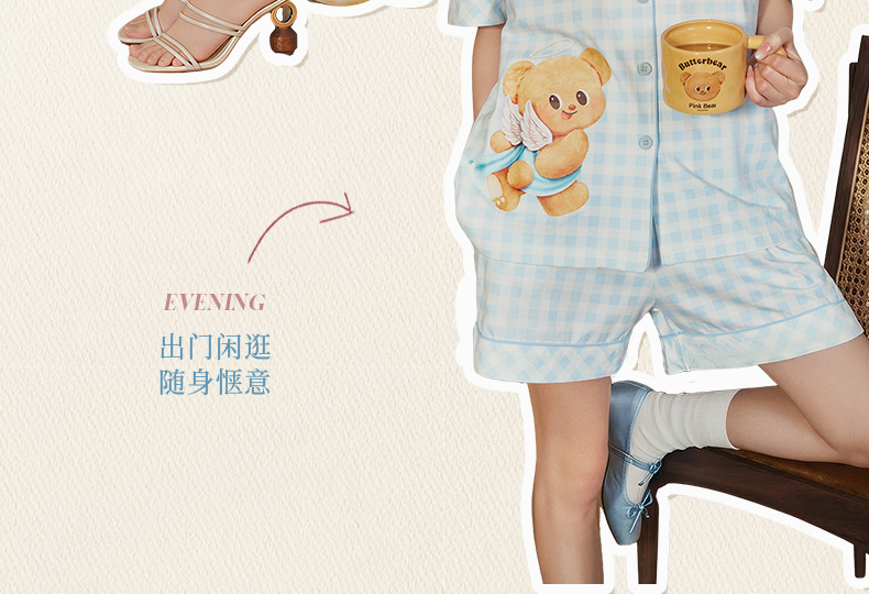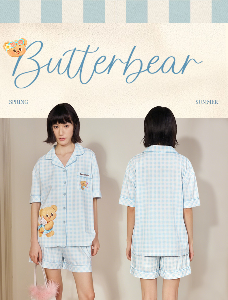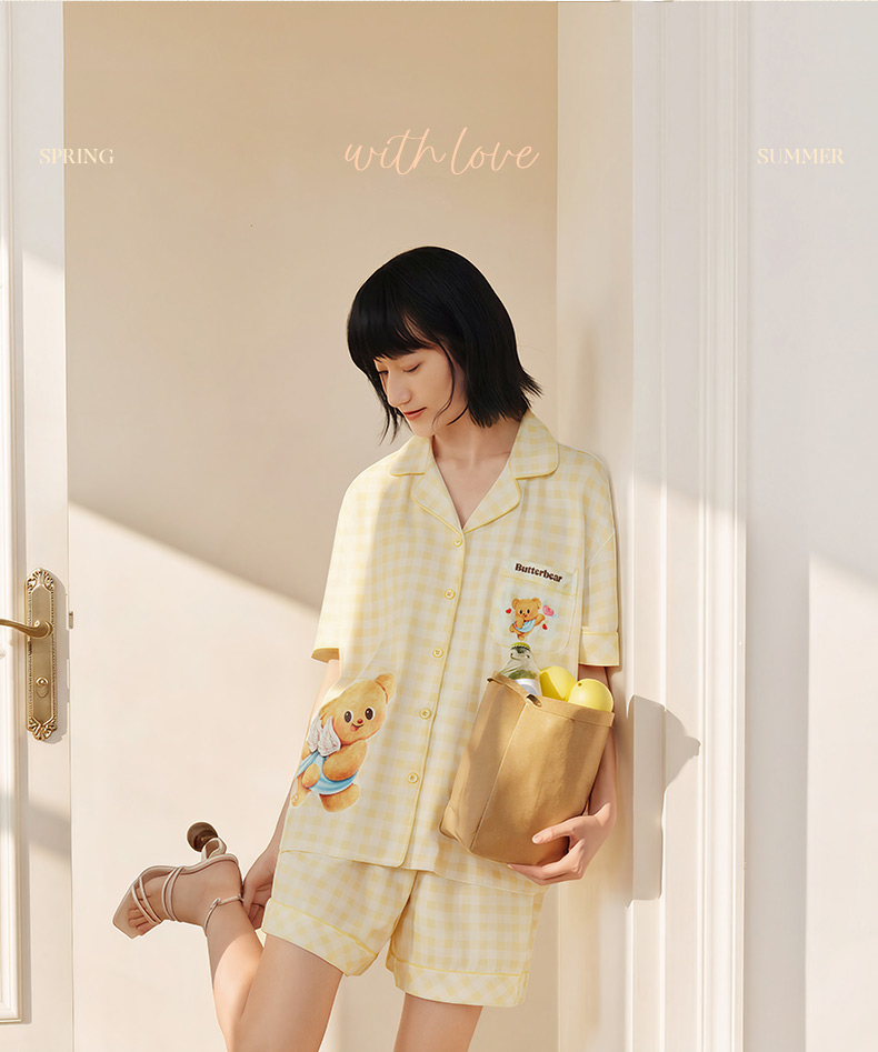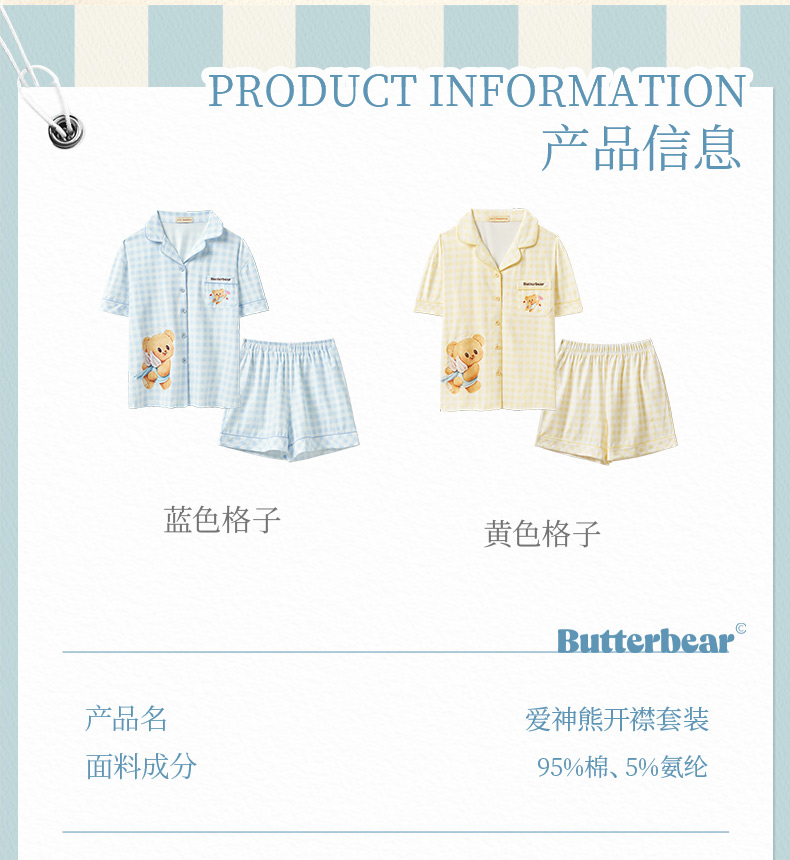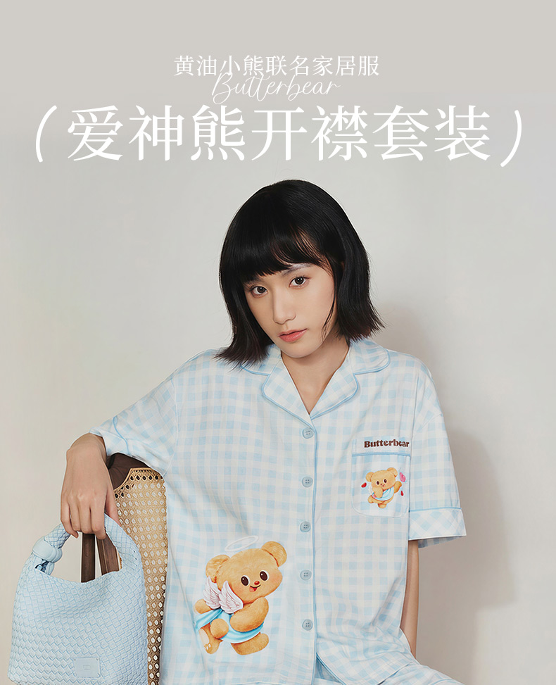 奶糖派睡衣女夏季黄油小熊联名爱神熊薄款可爱短袖短裤家居服套装