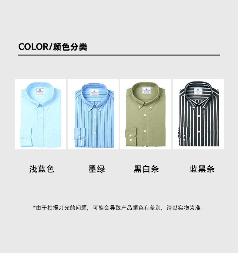 占姆士男士100%纯棉休闲商务碳素磨毛净色条纹长袖衬衫
