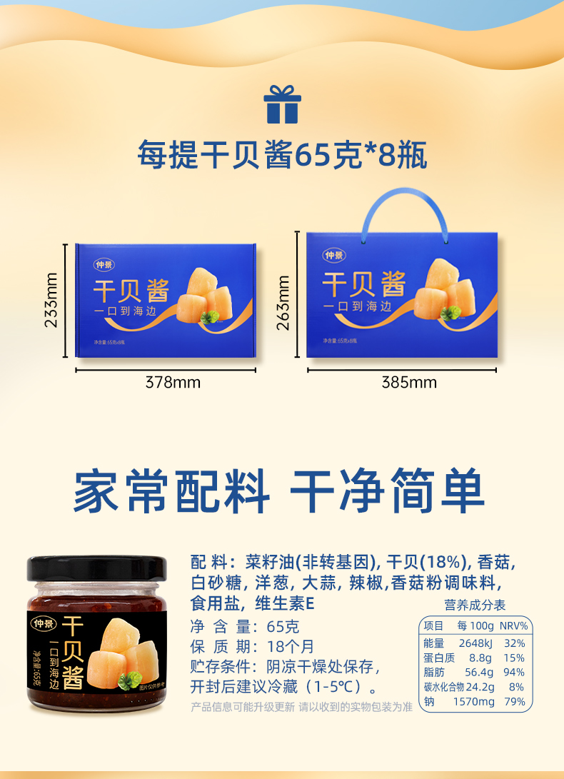 【中秋礼盒】仲景干贝酱礼盒XO瑶柱海鲜酱拌面拌饭酱下饭菜送礼伴手礼