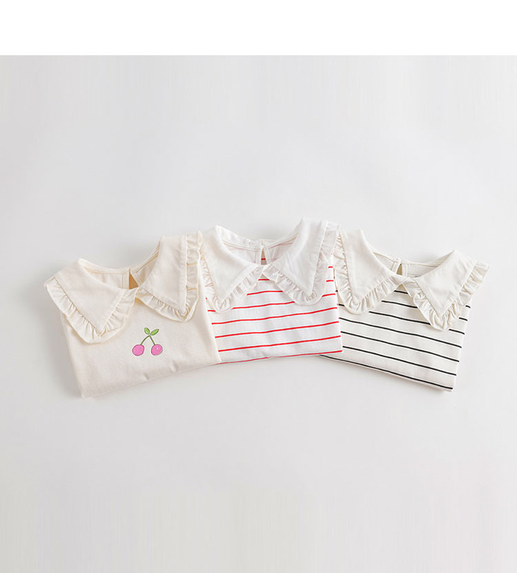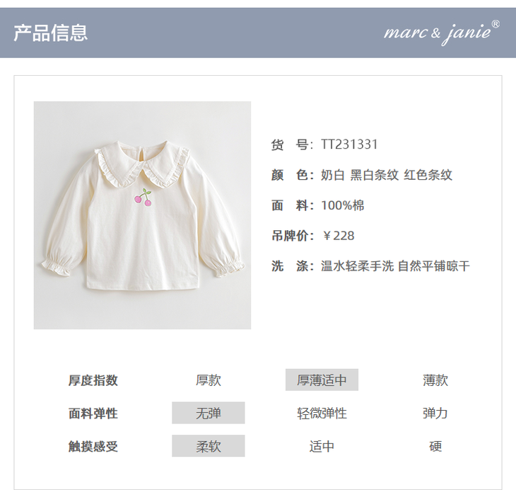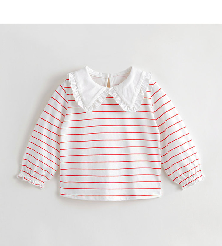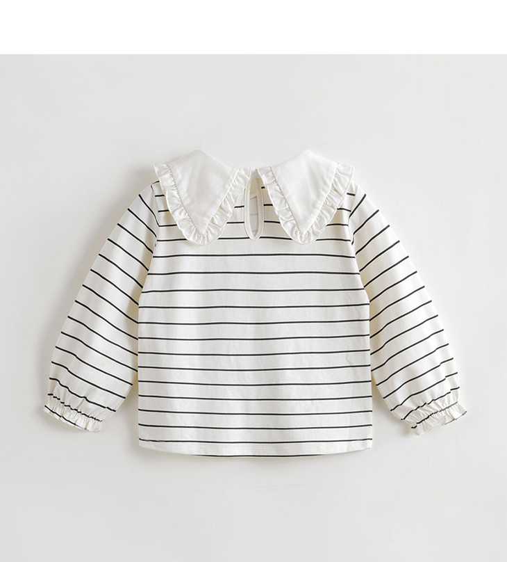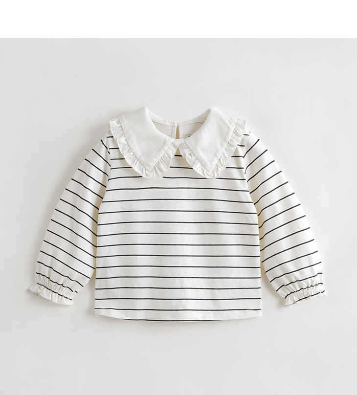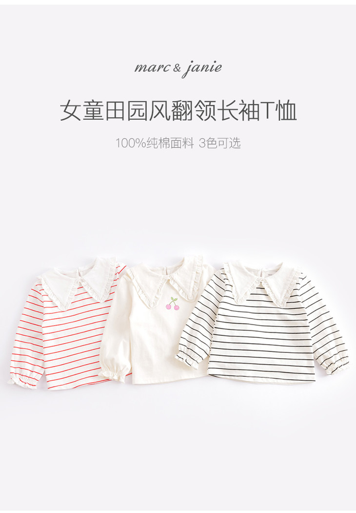 马克珍妮秋装新款 女童大翻领条纹长袖T恤儿童打底衫231331