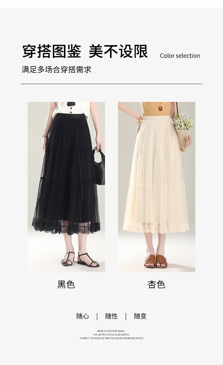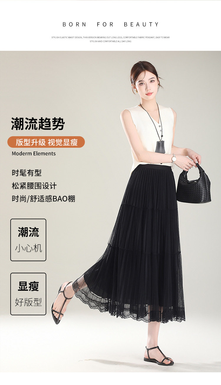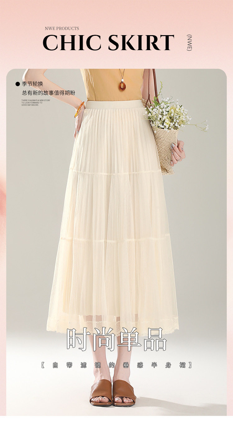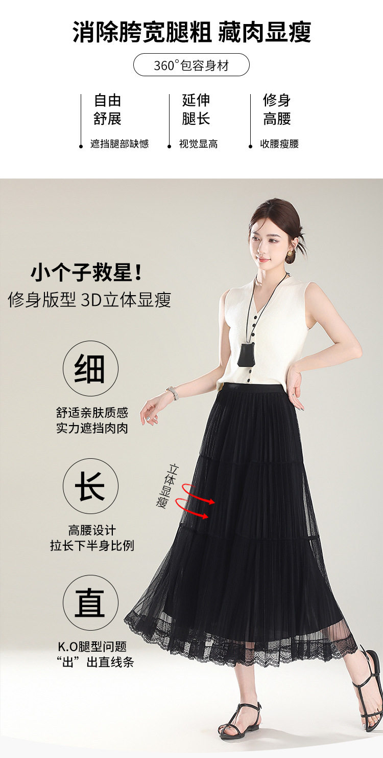 「自」全新升级【铂金会员137/天猫179/差价42】(00550)洛诗琳气质垂感网纱花边半身裙女2026夏季高腰显瘦百褶长裙