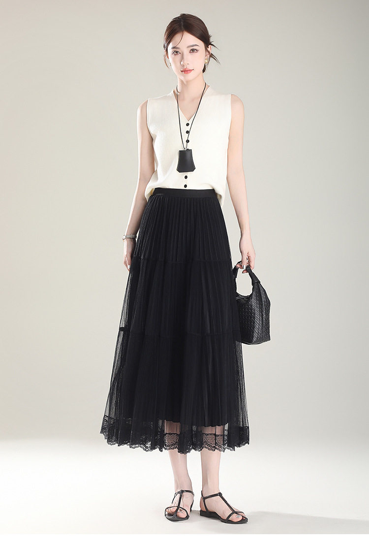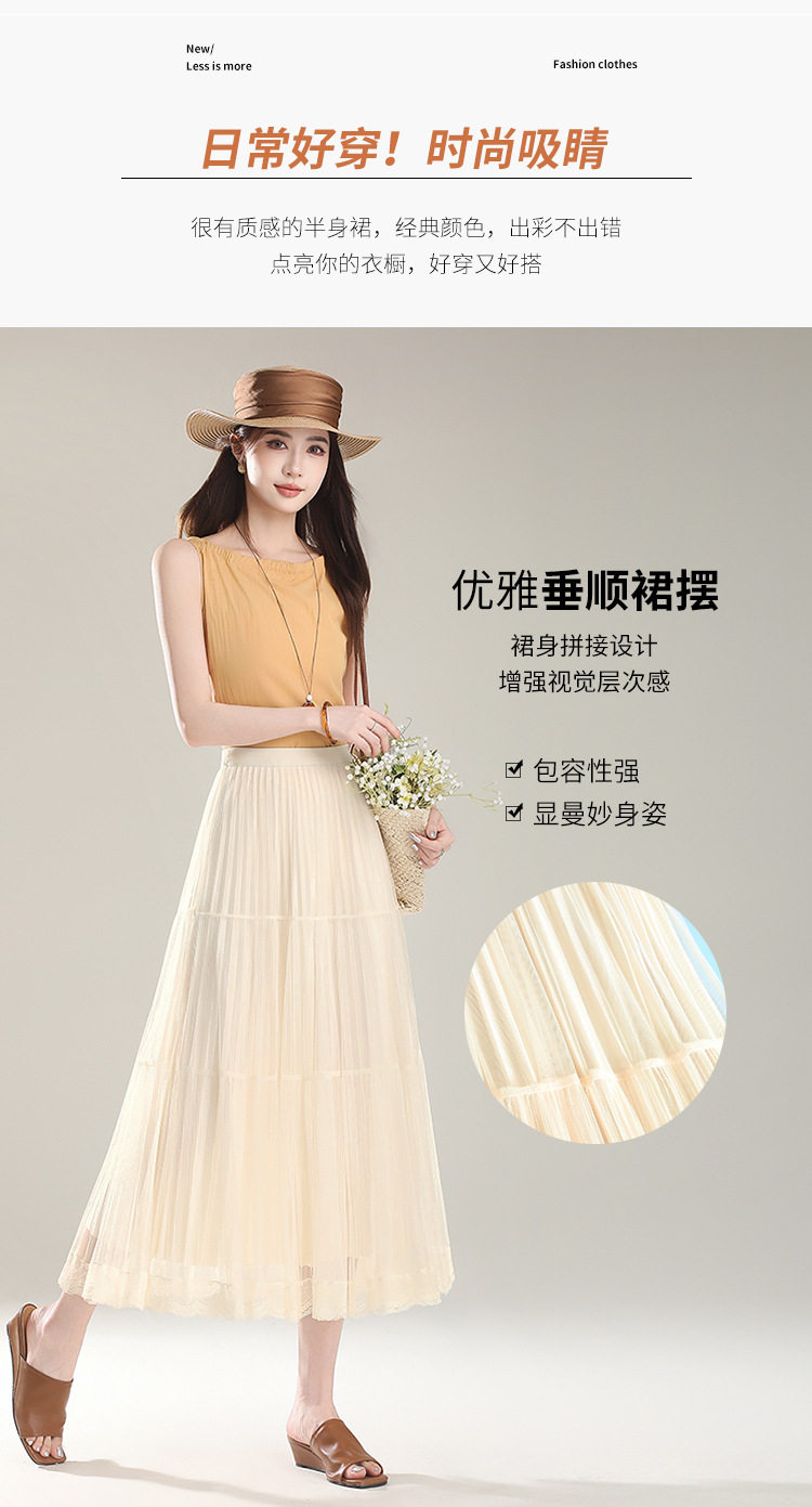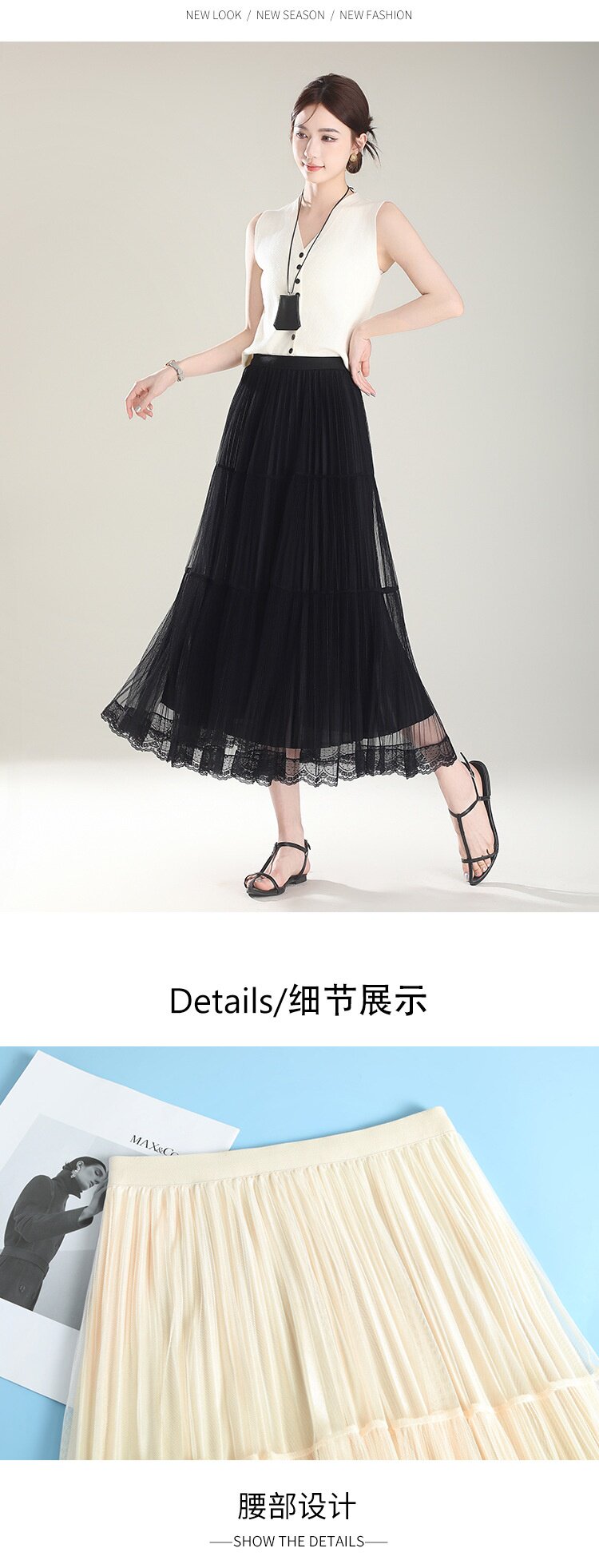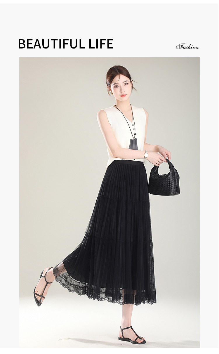 「自」全新升级【铂金会员137/天猫179/差价42】(00550)洛诗琳气质垂感网纱花边半身裙女2026夏季高腰显瘦百褶长裙
