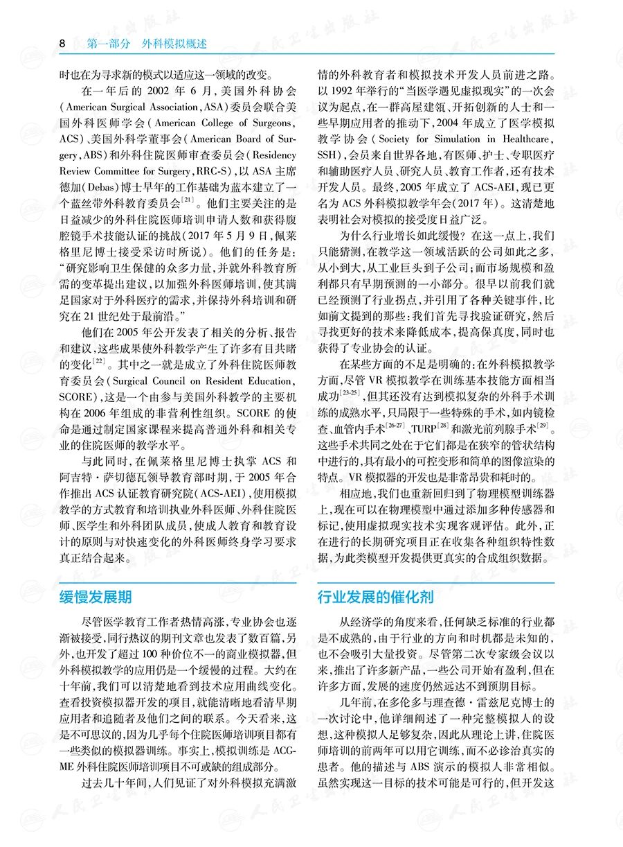 模拟医学在中国大地上飞速发展,很多学校、医院已经拥有了成规模的模拟中心和昂贵的模拟设备,并已经开展了一些模拟课程、培训和考试。与硬件设备迅猛发展不匹配的是模拟师资和课程的相对缺乏。而目前针对外科学的模拟医学教材也很少,本书介绍国外外科学及相应专科模拟医学相关概况,有利于国内从事模拟医学(外科学及相应专科)老师提高自身教学水平。本书分为5个部分,不但有外科模拟医学概述,也有模拟过程管理,非技术技能培训,并对外科学各个亚专科模拟医学教育如何开展进行分述。该书内容全面实用,重点突出,每个章节都有亮点,不仅为从事外科模拟教学的师生提供很好的指南,也为所有从事医学模拟的师生提供参考。