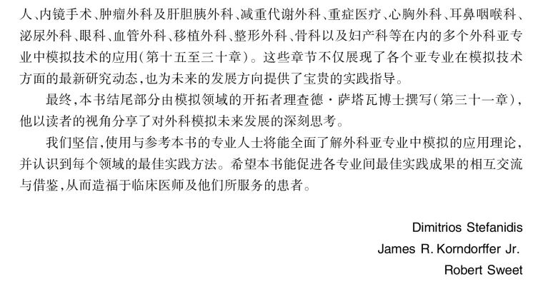施普林格“模拟医学系列丛书”代表着模拟医学领域的国际前沿,体现国际医学模拟教学的发展动向,也是医学教育特别是临床实践方面的新的突破。模拟医学教学作为理论教学与实践教学的桥梁,成为现代临床医学教育过程中不可缺少的一个环节,也将成为未来医学实践教学主流的教育学科。本书译自斯普林格出版的模拟医学系列丛书中的外科分册——Comprehensive Healthcare Simulation:Surgery and Surgical Subspecialties。在模拟医学日渐活跃的今天,必能对您有所助益。