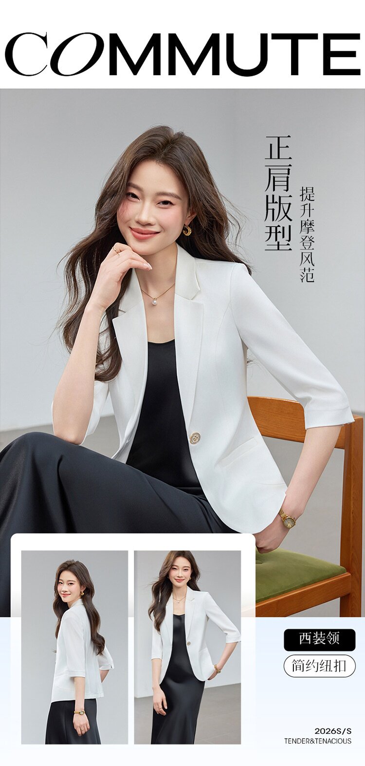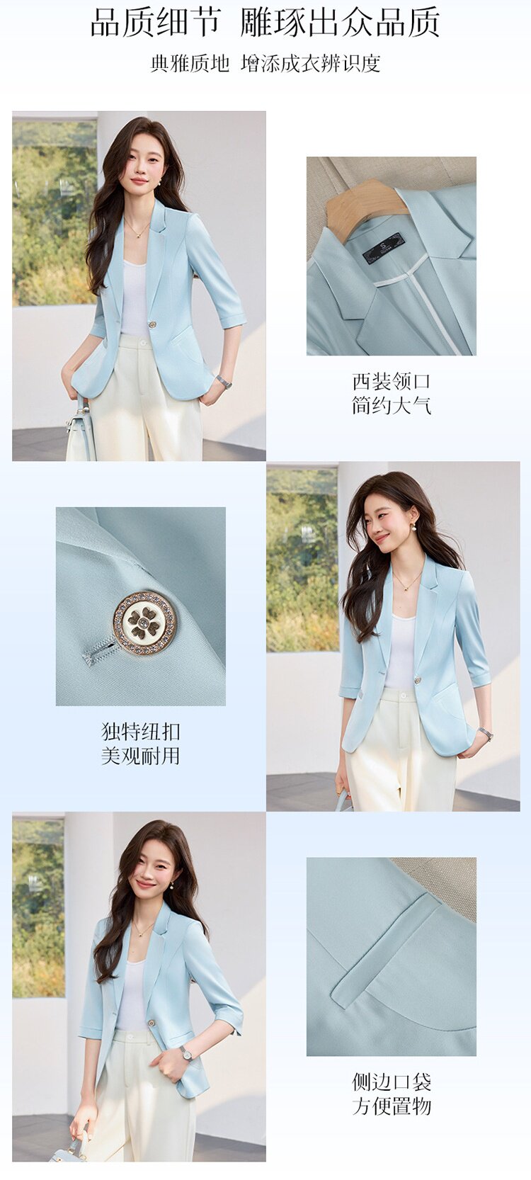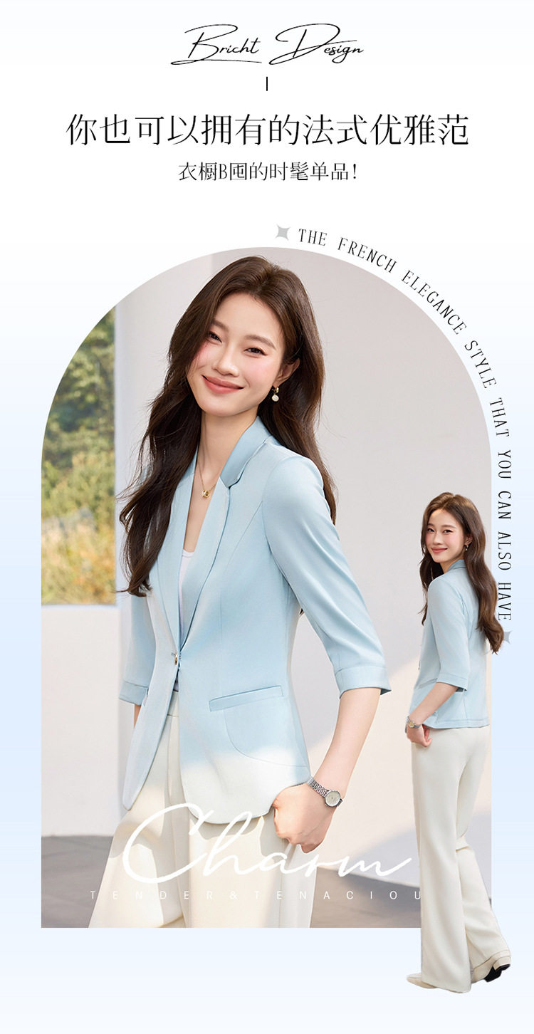 「自」全新升级【铂金会员146/天猫189/差价43】(21157)洛诗琳修身薄款小西装2026春季新款气质通勤收腰七分袖外套