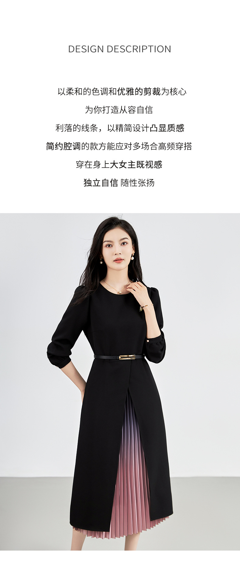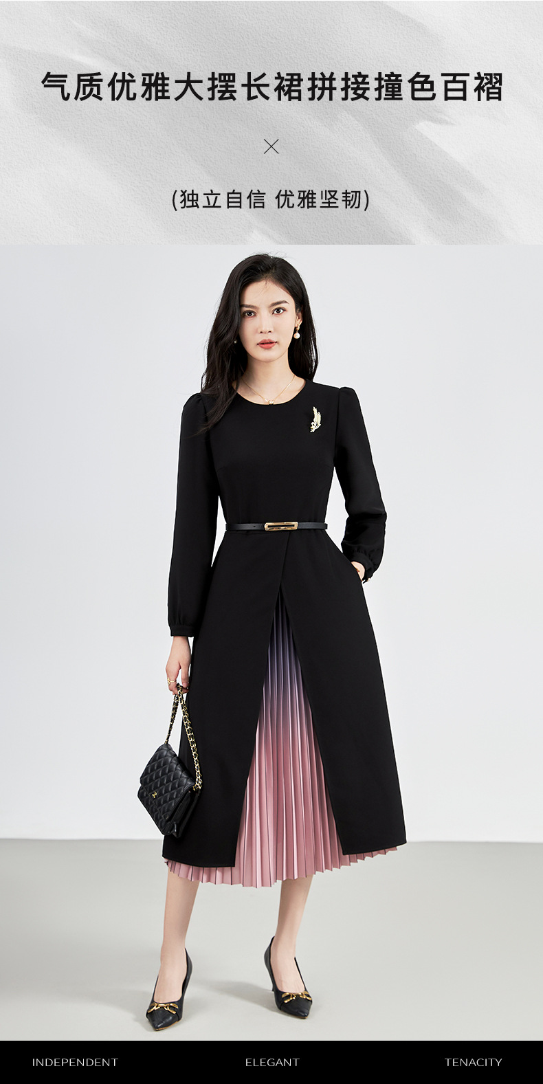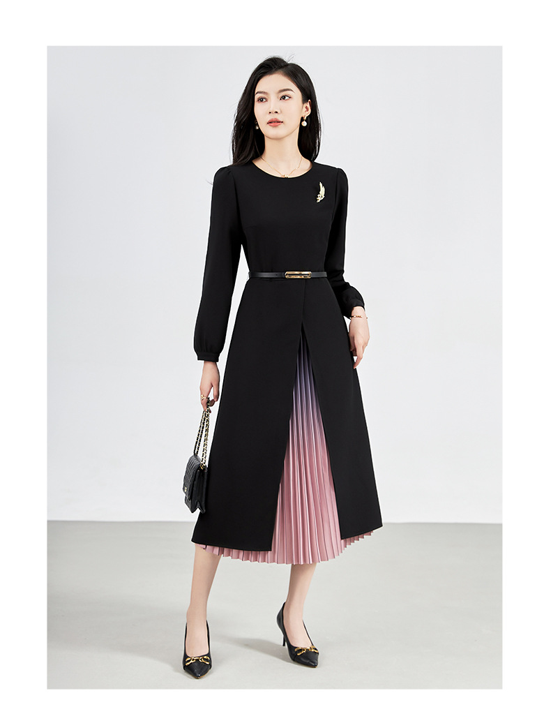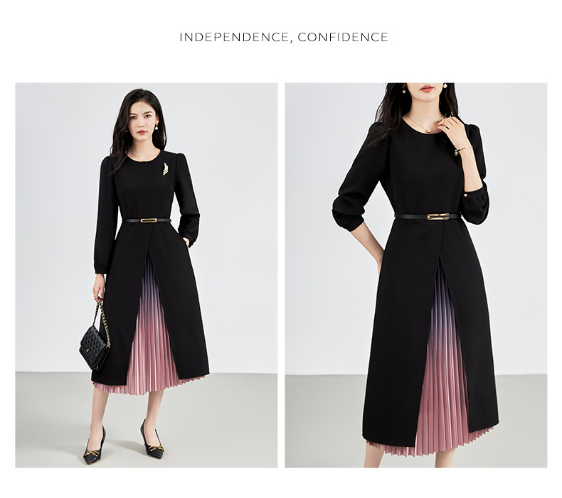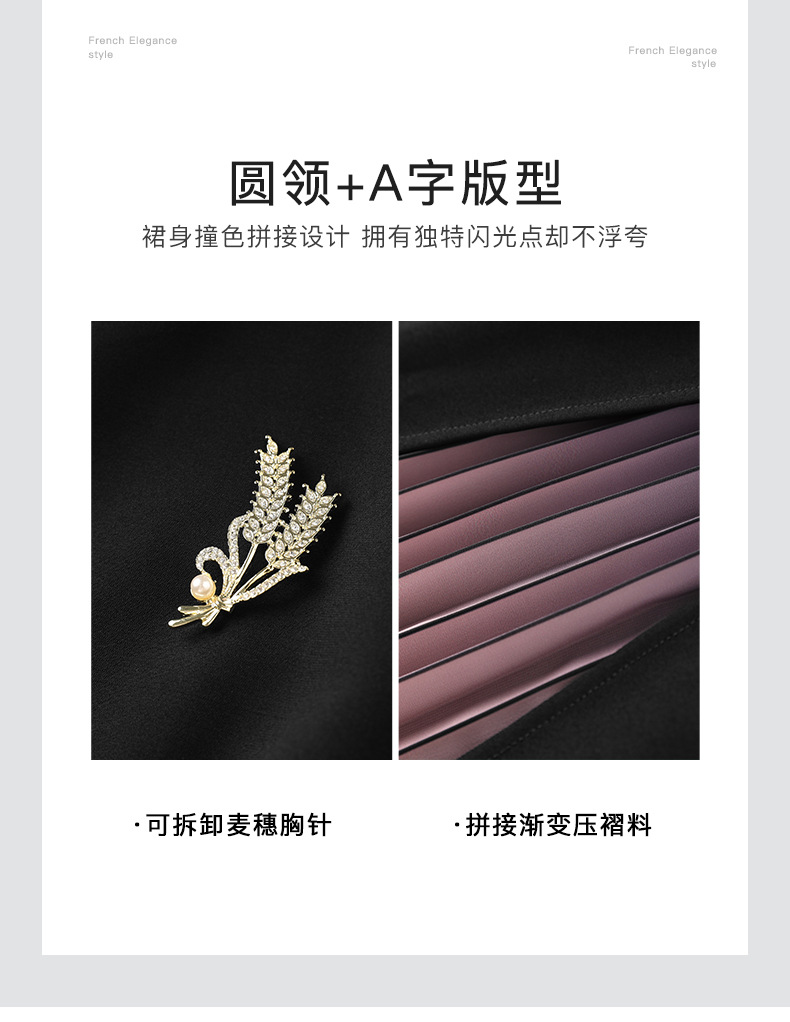 【高货wl】全新升级【铂金会员330/天猫439/差价109】(12706) 洛诗琳重工精仿三醋双色渐变压裙子法式气质时髦显瘦连衣裙