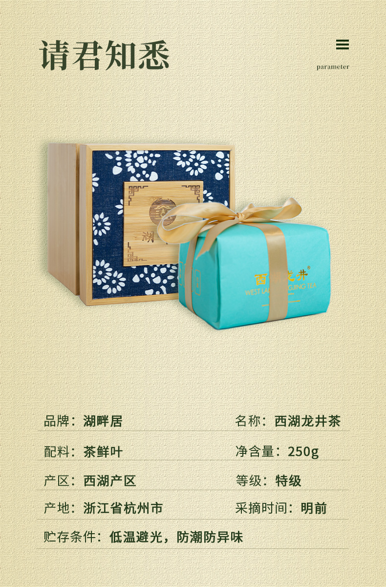 【新茶上市】湖畔居2025新茶 春茶明前特级壹号西湖龙井绿茶250g纸包竹盒送礼