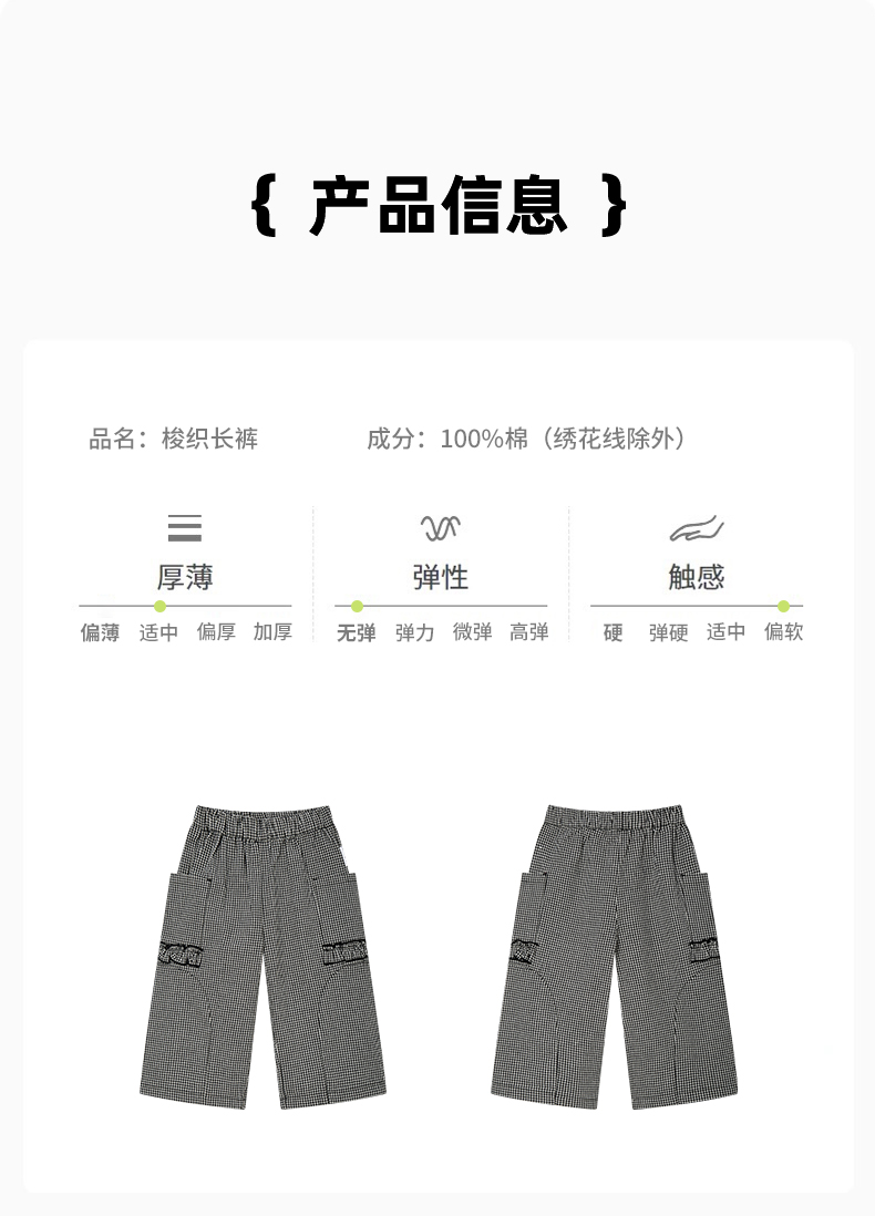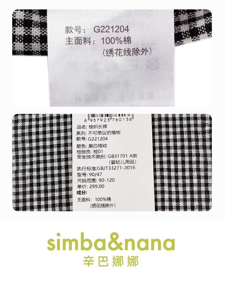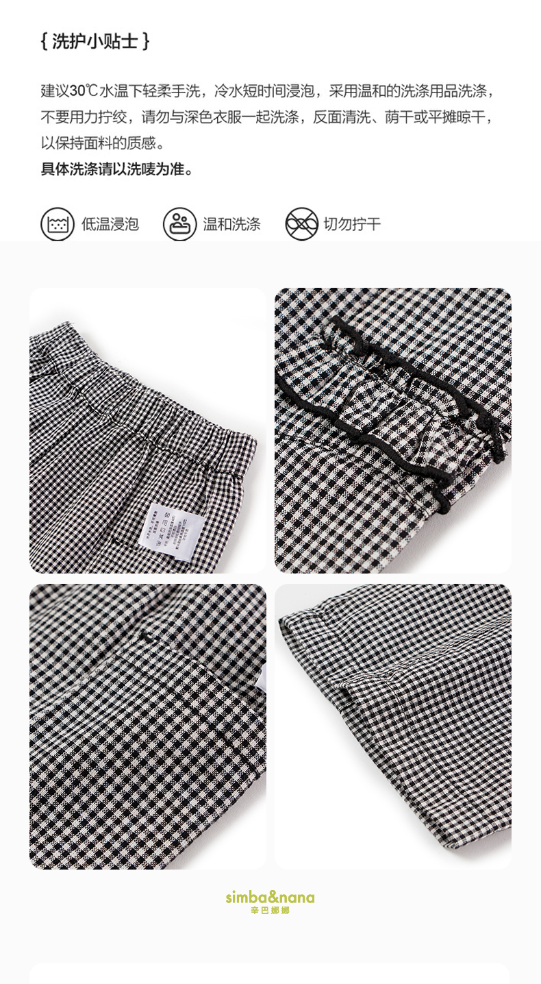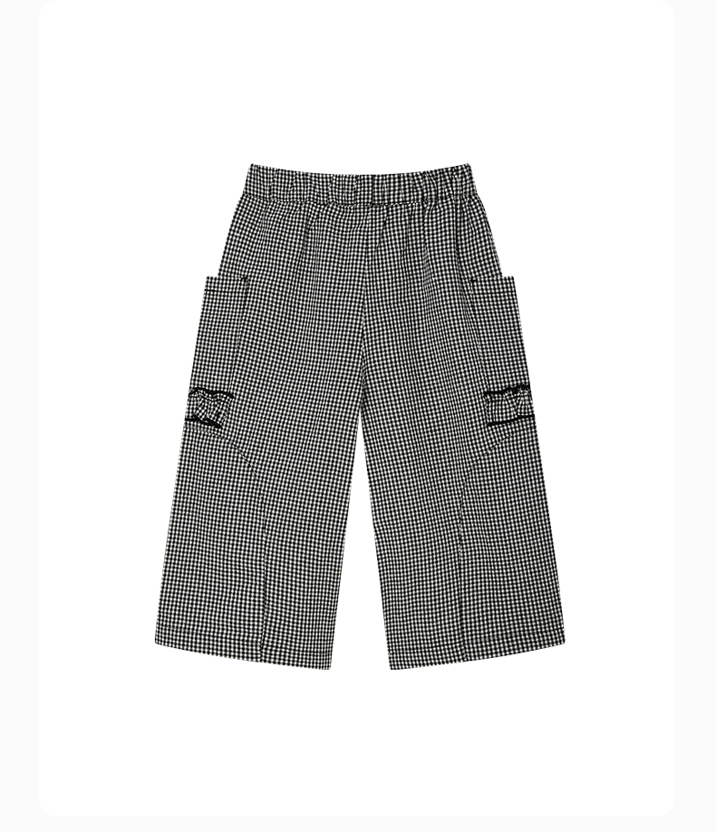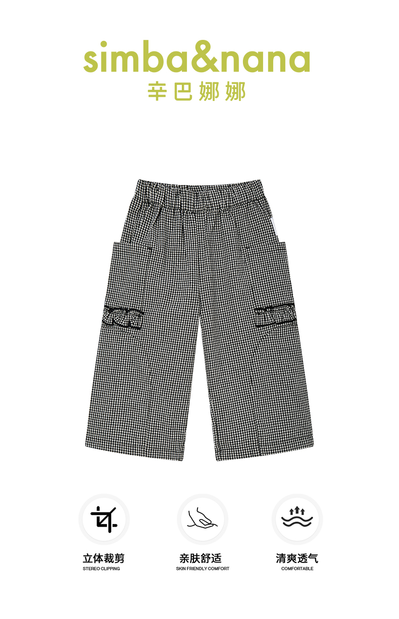 【辛巴娜娜】simbanana女童荷叶边小格子阔腿裤小童春装大口袋宽松休闲长裤