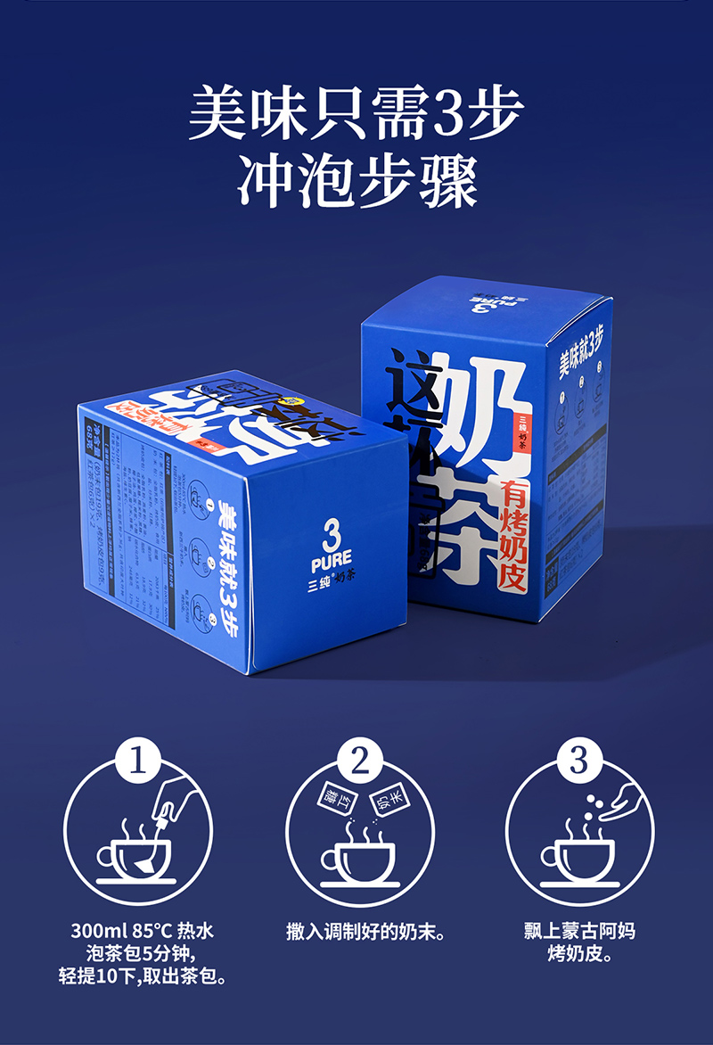 三纯奶茶,内蒙古风味奶茶,甜茶+咸茶组合装,每盒含2杯