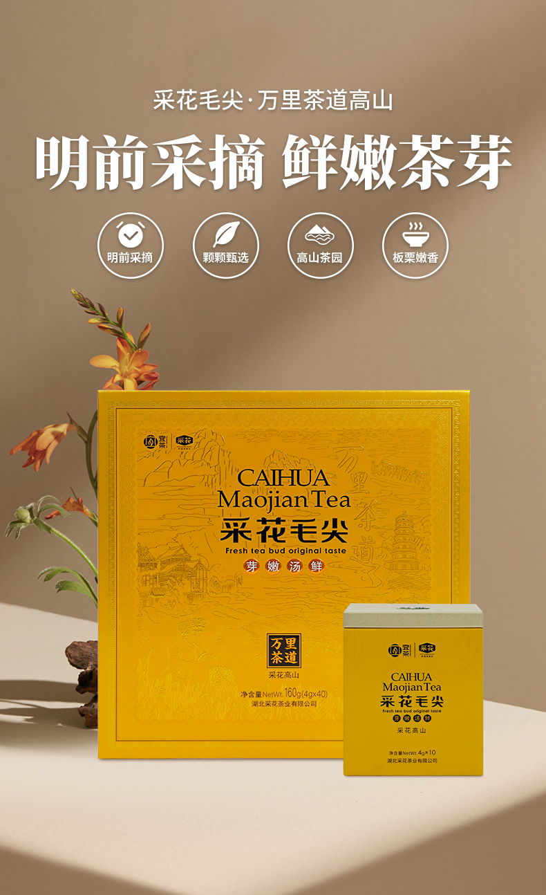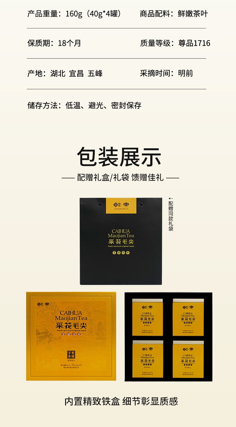2025新茶 采花毛尖绿茶 五峰茶明前芽茶高山茶叶礼盒嫩道和(新款万里茶道 高山 160g /40g*4罐)