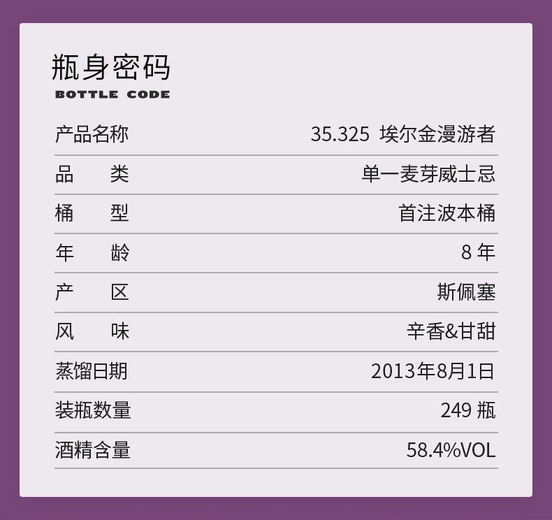 【SMWS】 35.325 埃尔金漫游者 8年 单一麦芽 威士忌 进口 洋酒