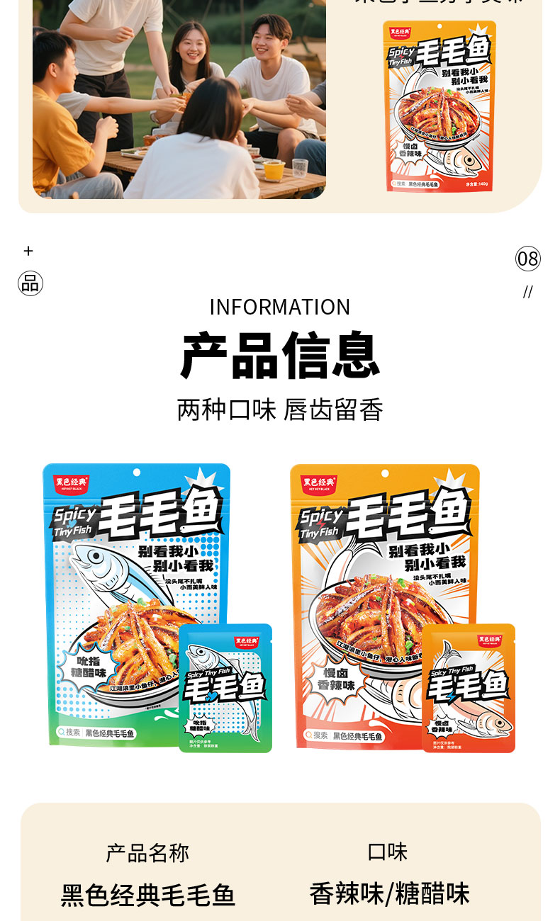 黑色经典香辣毛毛鱼解馋小食140g/袋 香辣/糖醋任选