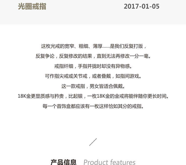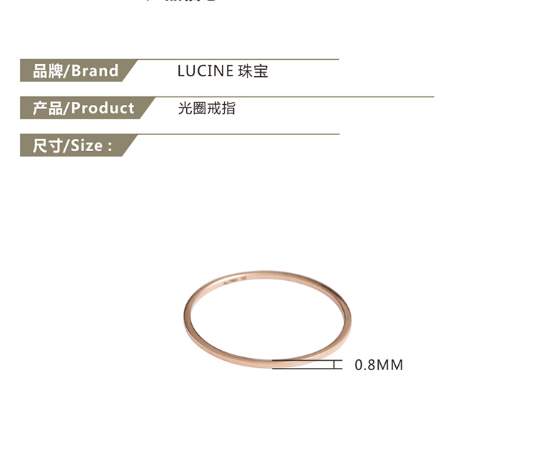 LUCINE 18K黄金光圈戒指七夕礼物设计玫瑰金尾戒女细关节戒叠戴感