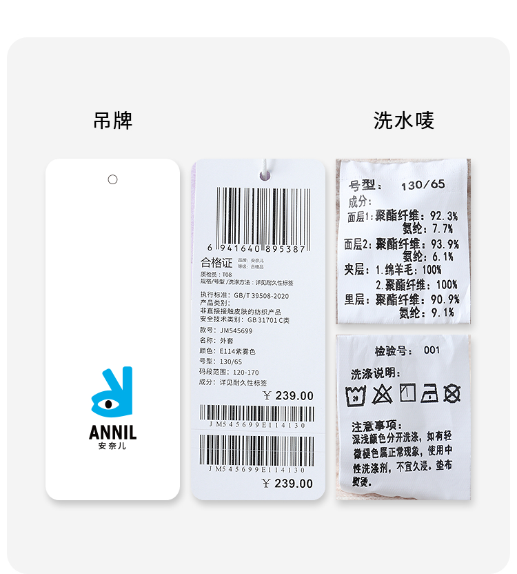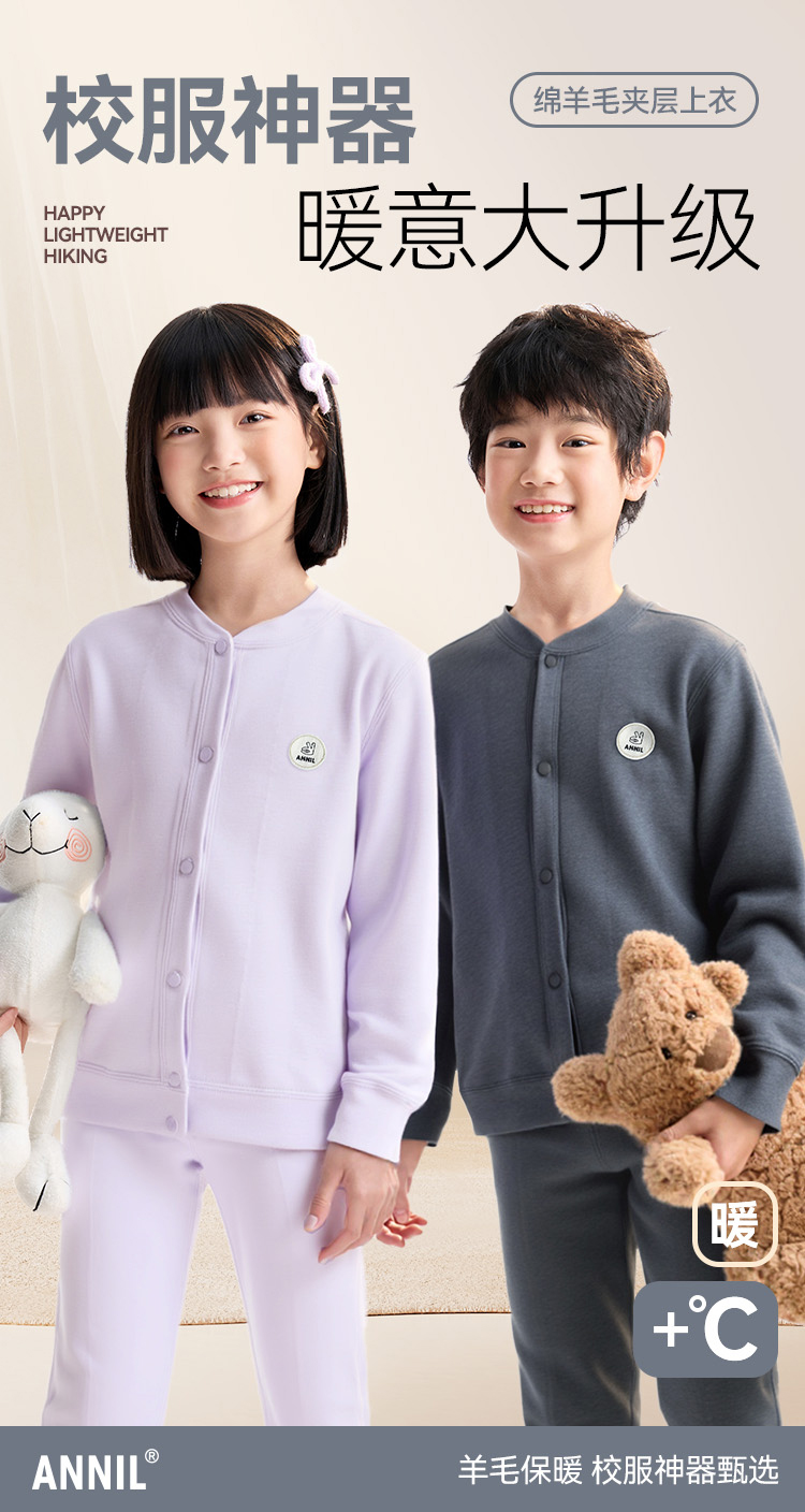 【校服内胆/羊毛夹层保暖衣】男女童家居外套冬季新款安奈儿童装JM545699