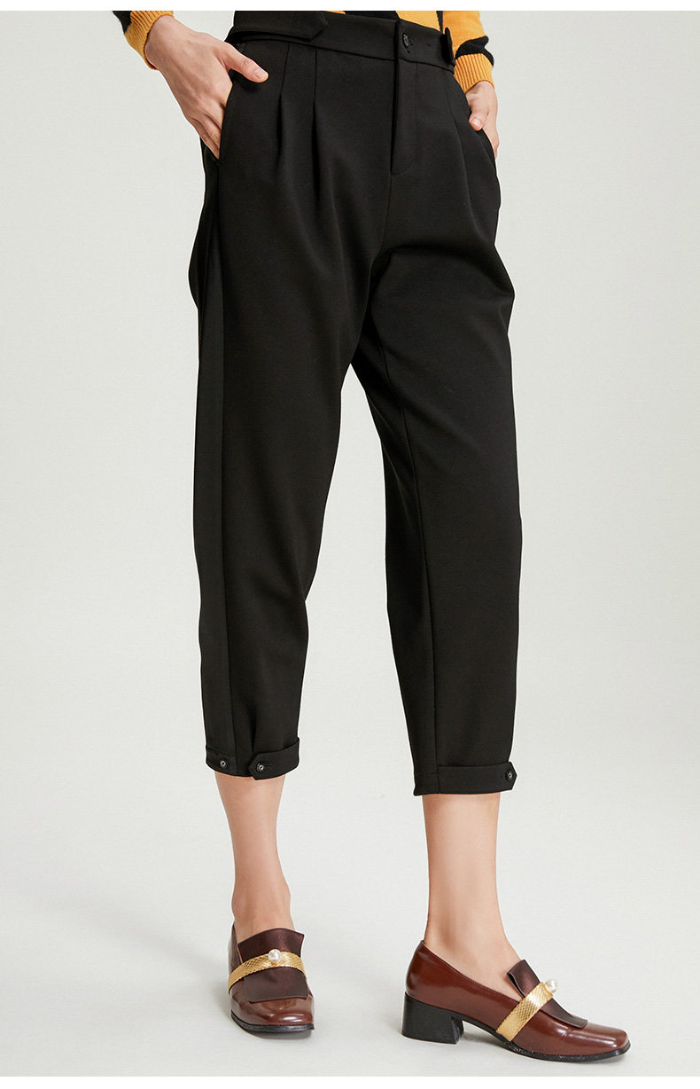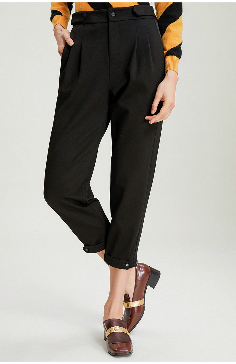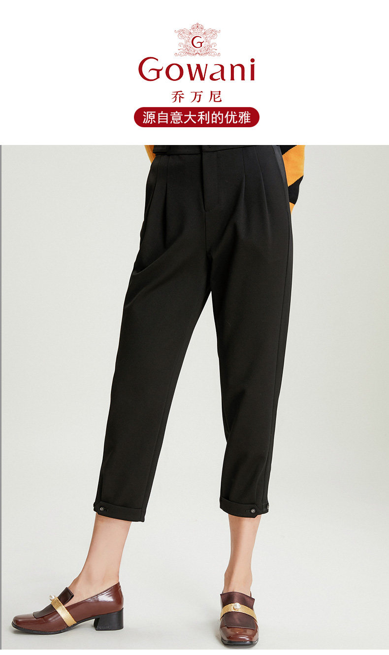 乔万尼黑色修身显瘦哈伦裤时尚简约直筒长裤休闲裤冬EN4F850