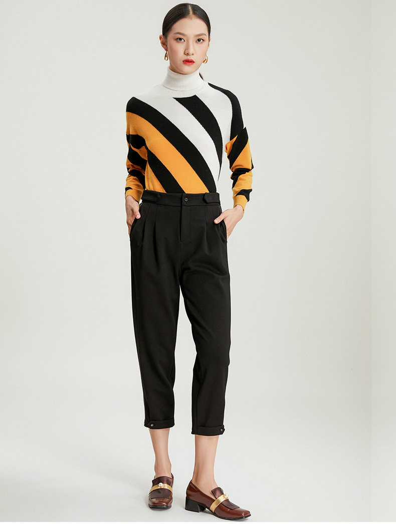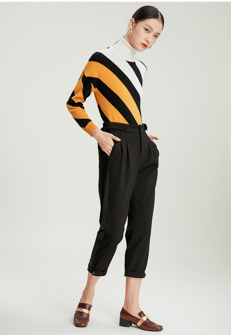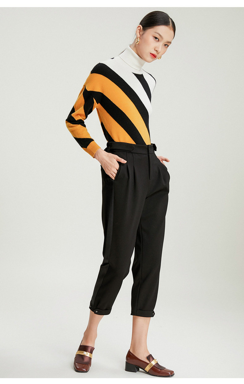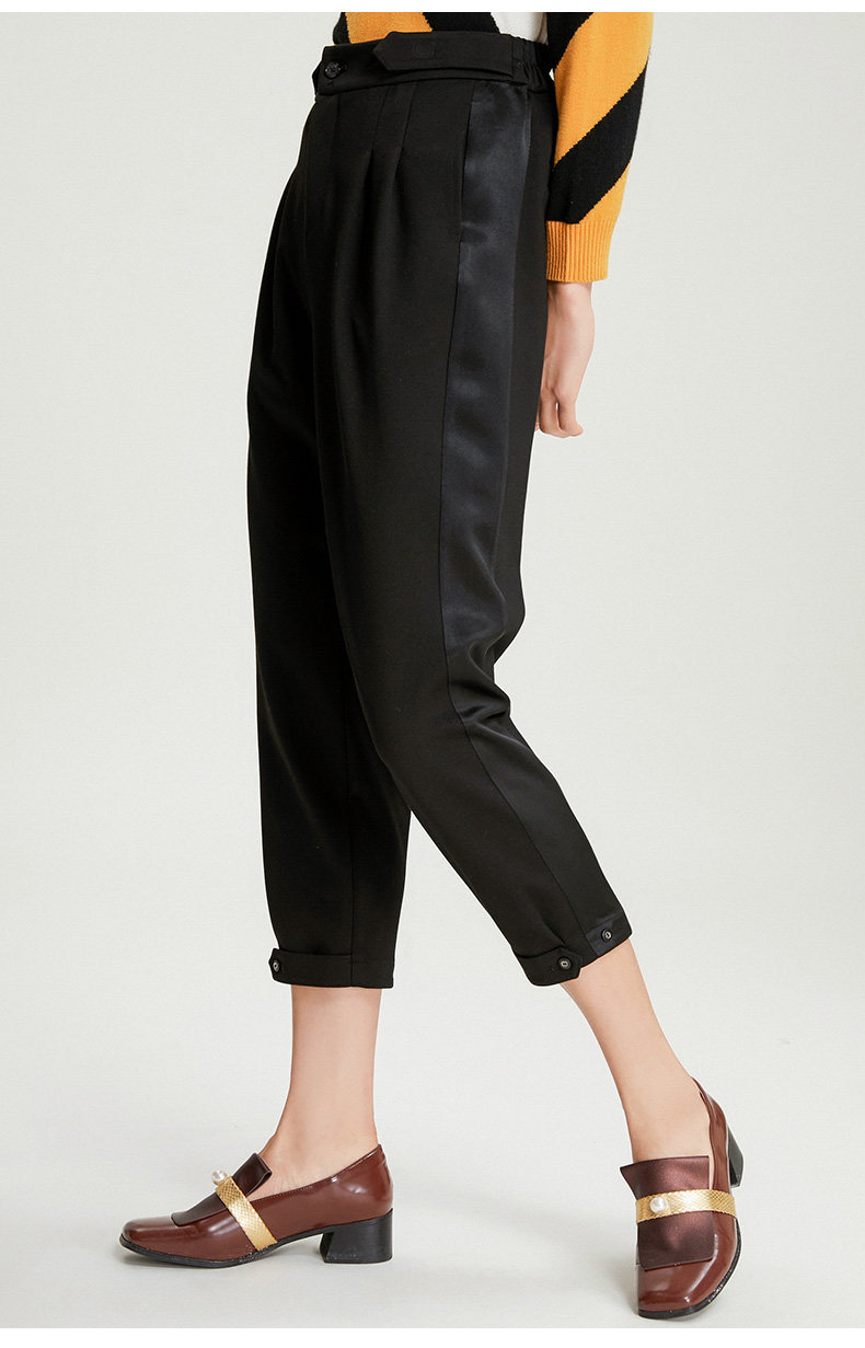 乔万尼黑色修身显瘦哈伦裤时尚简约直筒长裤休闲裤冬EN4F850