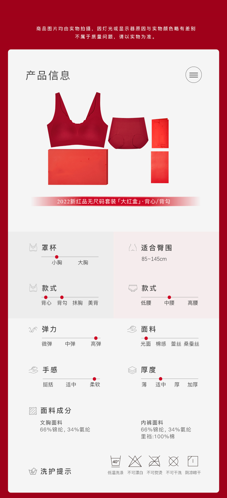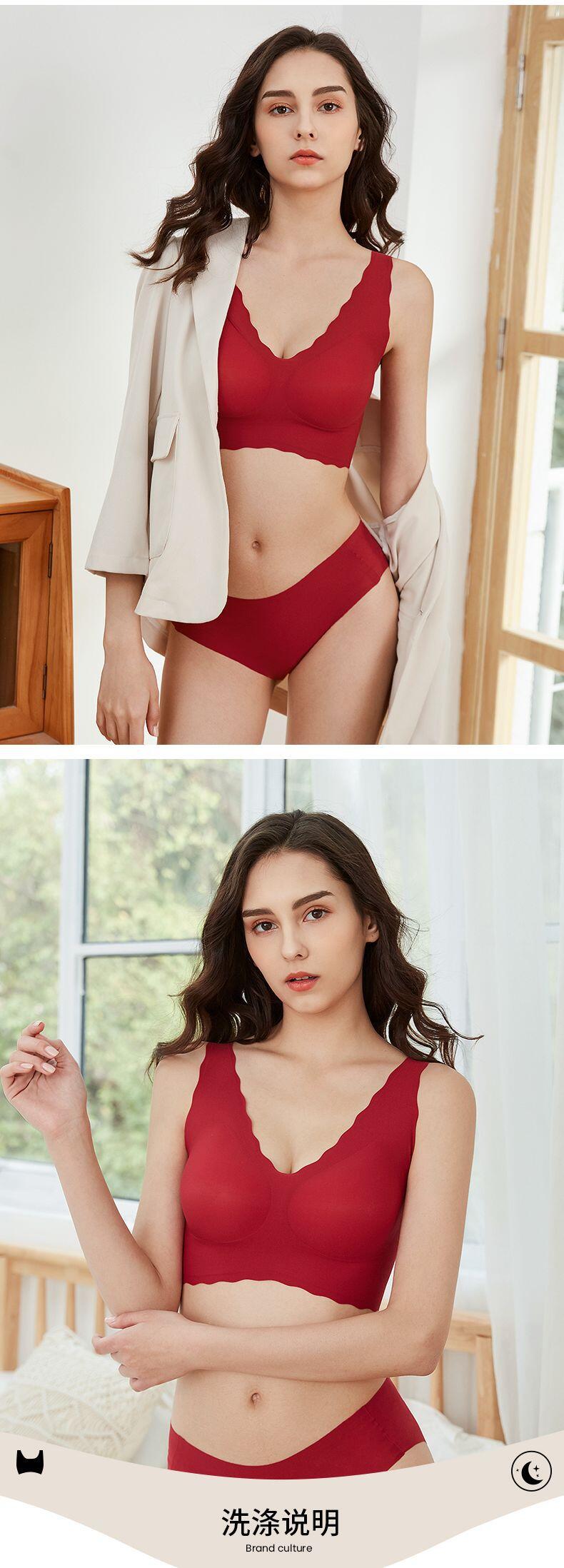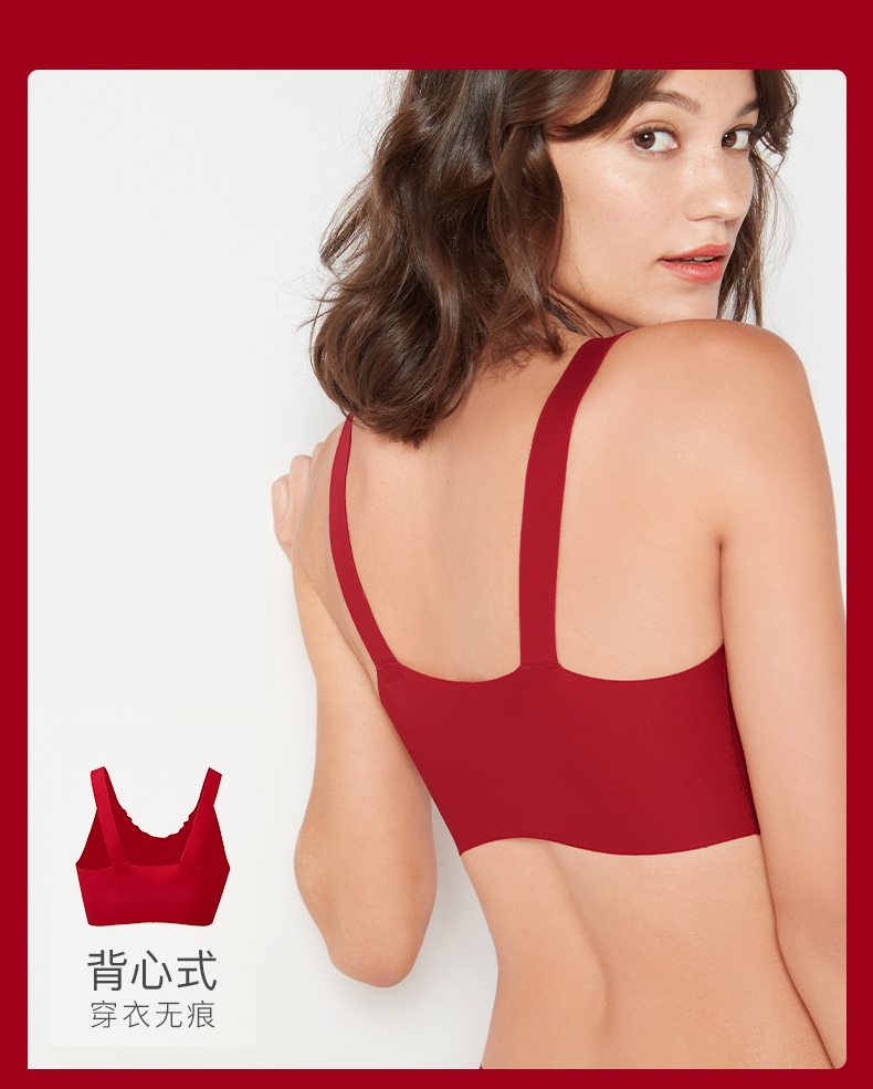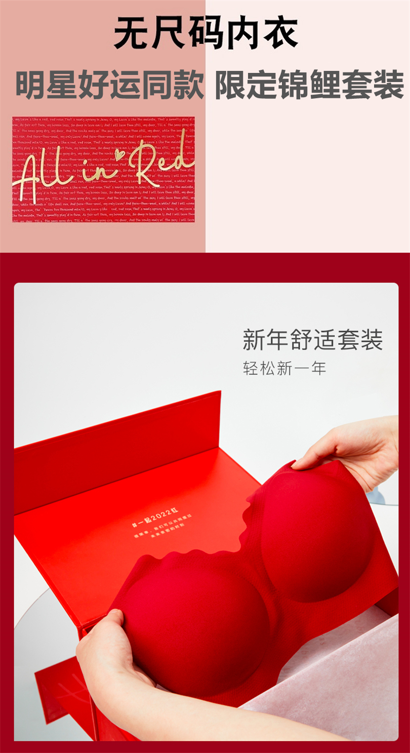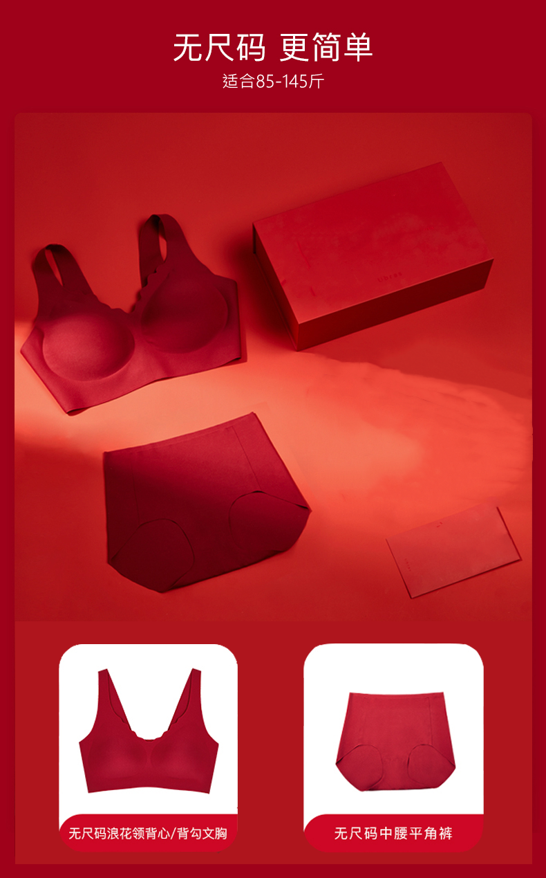 【2套更优惠】欧阳娜娜同款无尺码大红盒红色内衣内裤套装浪花背心背勾本命年文胸