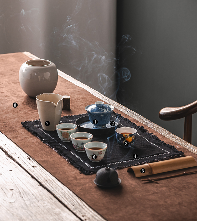 茶香记洒蓝银口兰花盖碗仿古工艺陶瓷泡茶器古典优雅茶具110ml