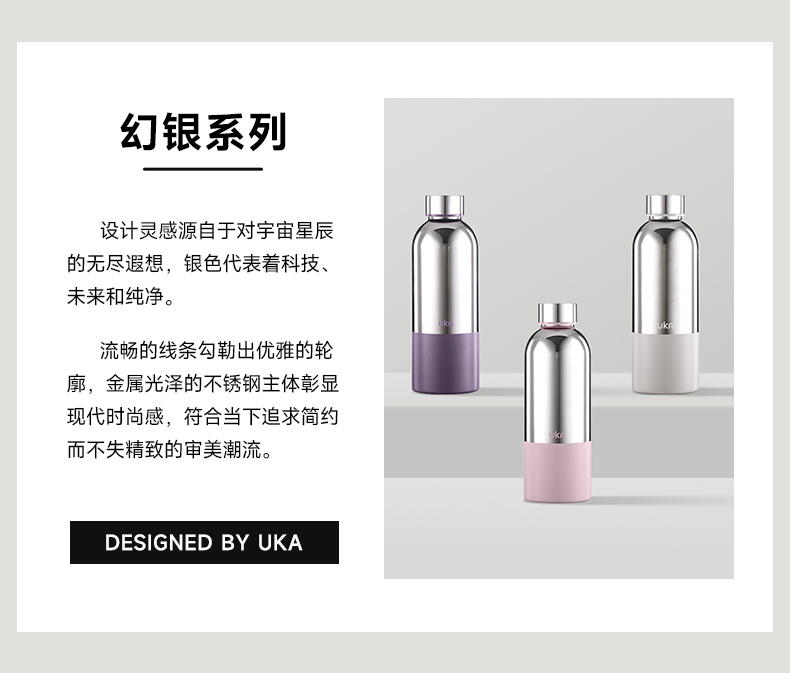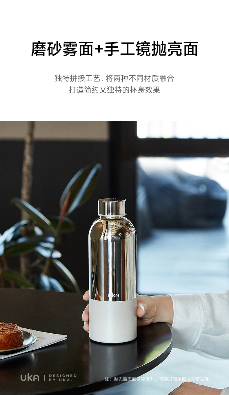 UKA 幻银轻奢保温杯大容量不锈钢材质热水杯保温保冷