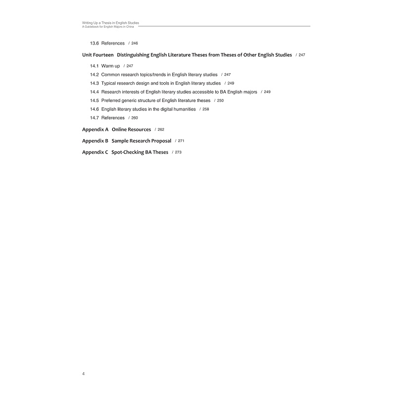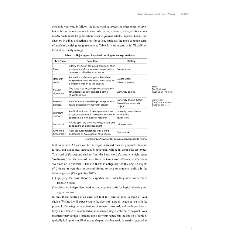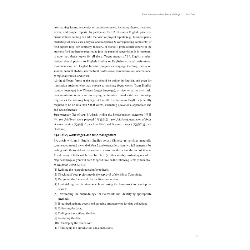 本书为新文科双一流英语本科专业的配套教材,按照论文选题、文献阅读、综述开题、研究设计、章节撰写、师生互动等主题将毕业论文写作分解为14个单元,在线资源、院系规定及学生范文等4个附录章节,秉持多元素养与(语料库)数据驱动学习的教学理念,培养学生的体裁意识、数字素养、学术道德和思政意识,突出立足思辨能力培养和批评话语分析方法的课程思政融入,强化依托文献引用和语言分析的新文科信息技术整合,提供全程循序、实例加持、问题驱动的写作指导。本书践行前沿成果的外语教材编写理念,突出全域覆盖的现代信息技术融合,追求融通复合的创新外语人才培养。