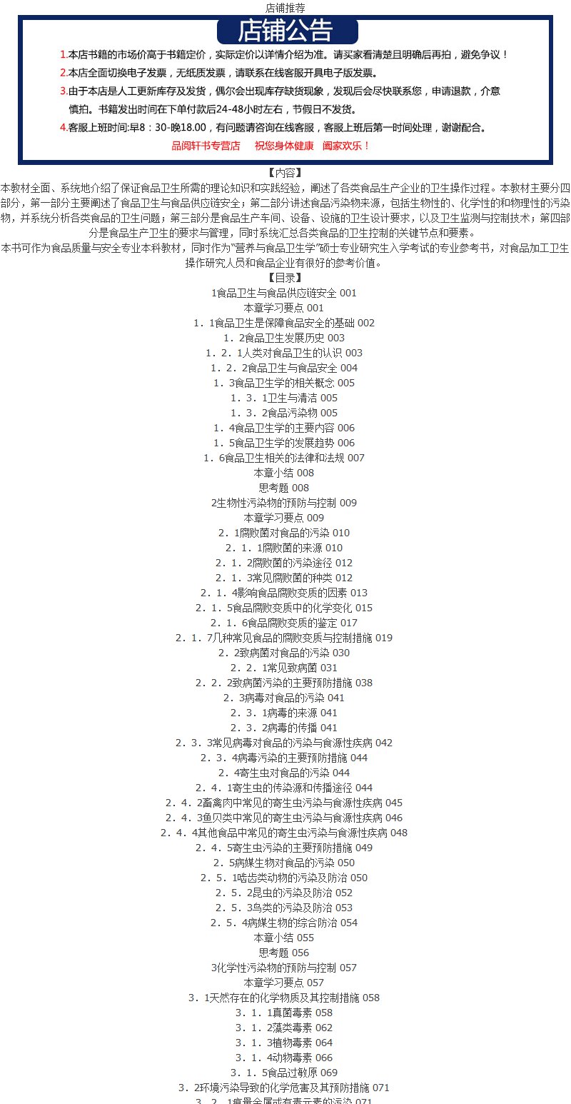 食品卫生学(姚卫蓉)(第三版) 姚卫蓉,于航,钱和 编 9787122400123 化学工业出版社