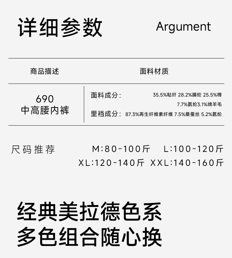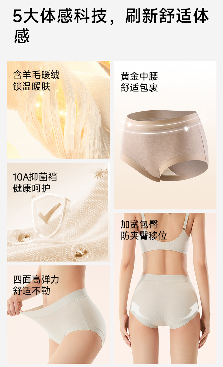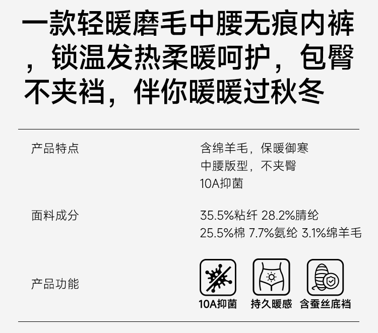 【宜可露】 绵羊毛暖绒抑菌裤(盾形一体裆)面料黑科技 中高腰/高腰 阳光棉与保暖腈纶科学配比混纺,保暖不闷汗(贴身衣物不可退换)689YC