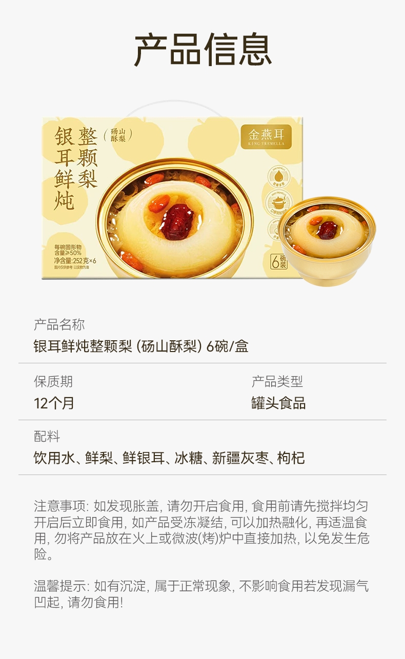 精选砀山“古树酥梨” | 金燕耳·银耳鲜炖整颗梨(砀山大梨)252g*6碗礼盒装,免去24小时浸泡和2小时炖煮