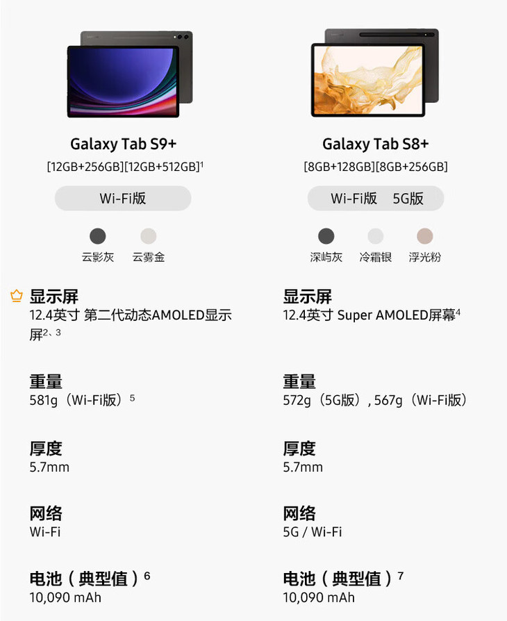 三星 Tab S9+ 12.4英寸 智能平板电脑