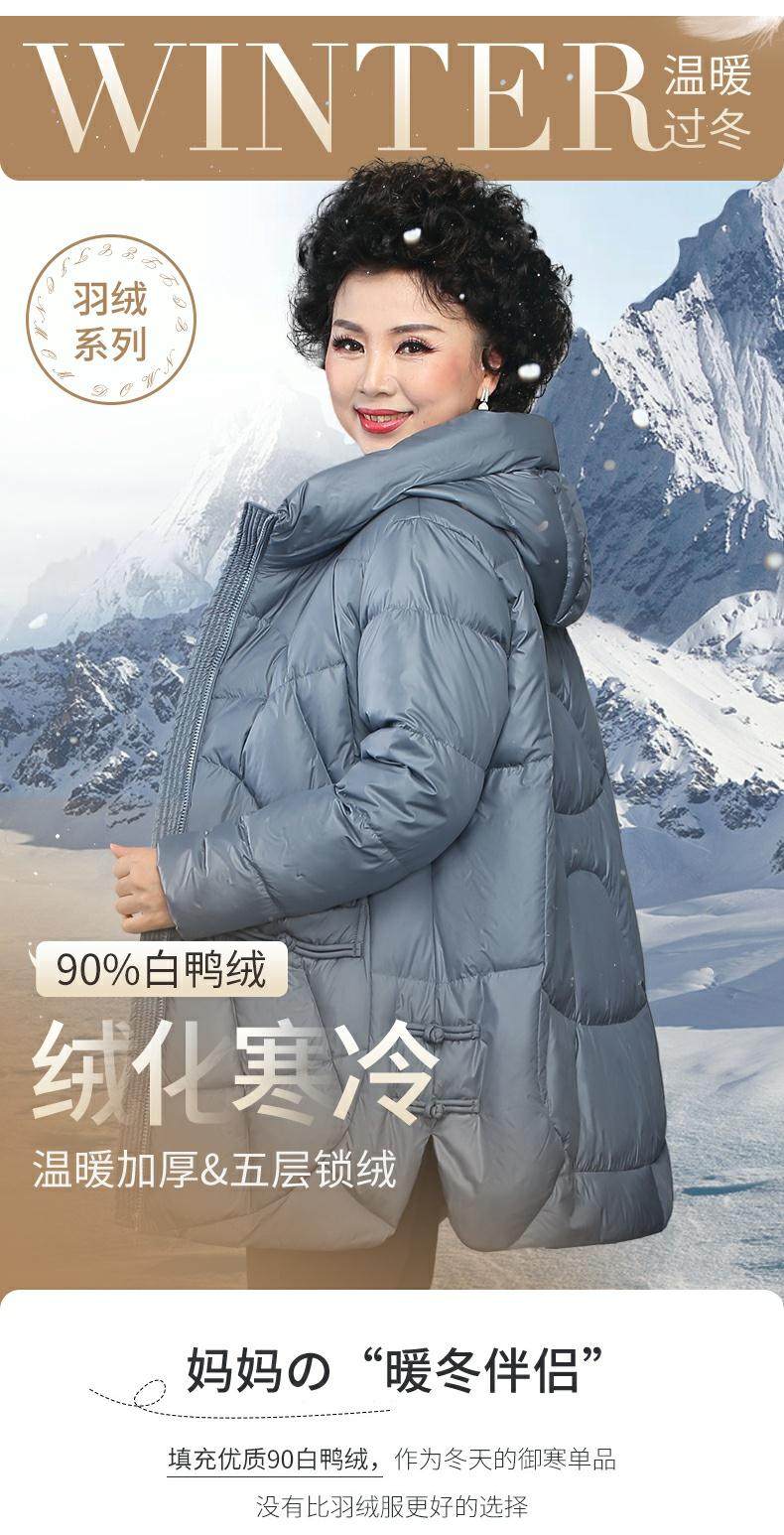 A6686 妈妈装2023冬装新款羽绒服中长款洋气大码女士外套保暖中老年棉袄