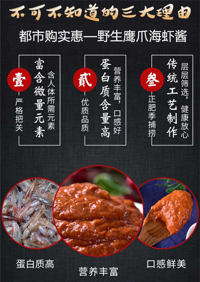免责声明:购买即表示已经阅读和知悉虾酱和其他禁忌食物食用会引起身体不适,并能规避,未成年食用需要家长监护下入食: