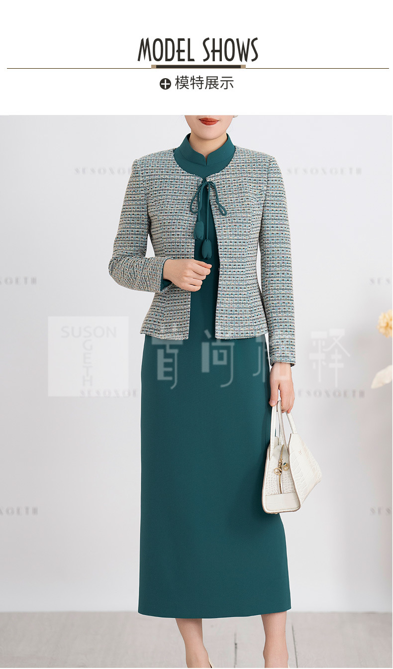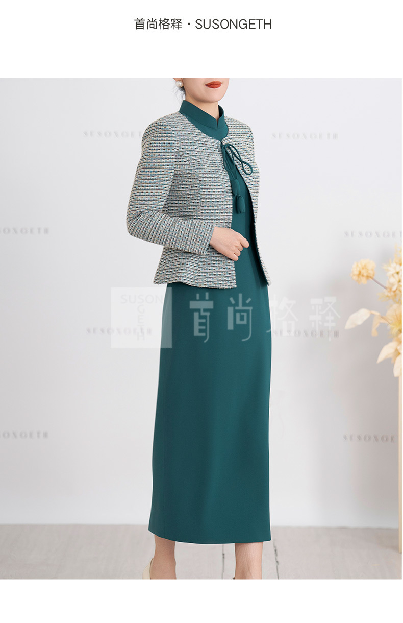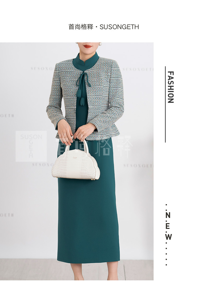 S516LAL808H08 2025春季新款气质名媛小香风针织外套新中式复古立领连衣裙套装裙