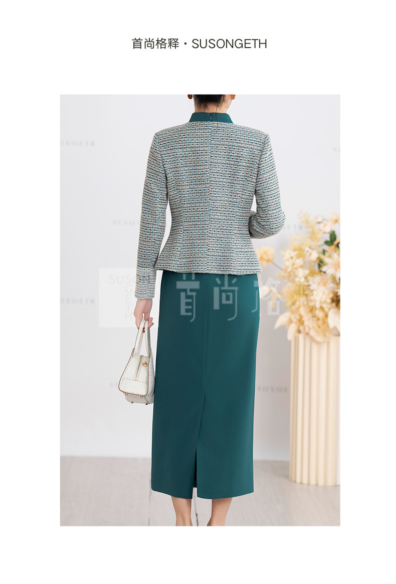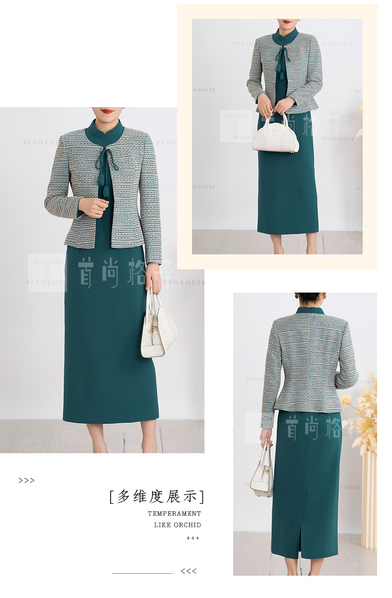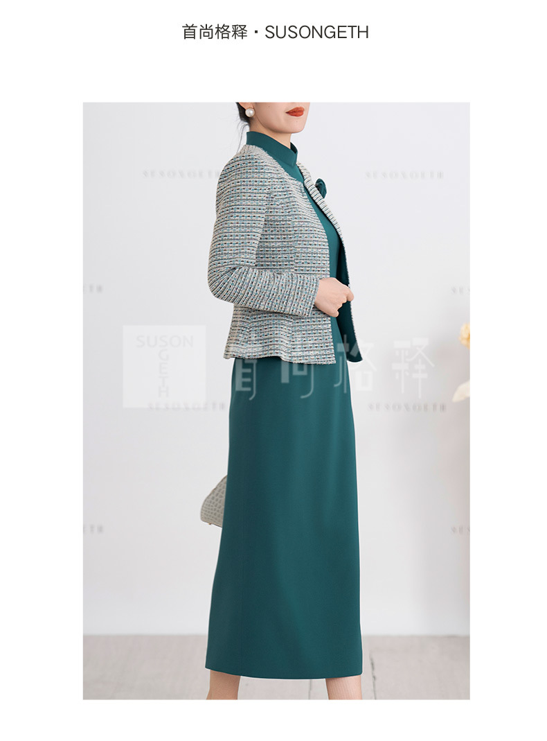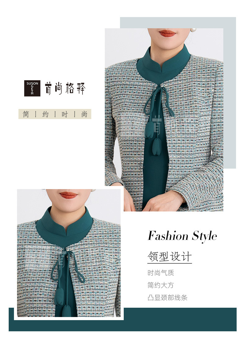 S516LAL808H08 2025春季新款气质名媛小香风针织外套新中式复古立领连衣裙套装裙