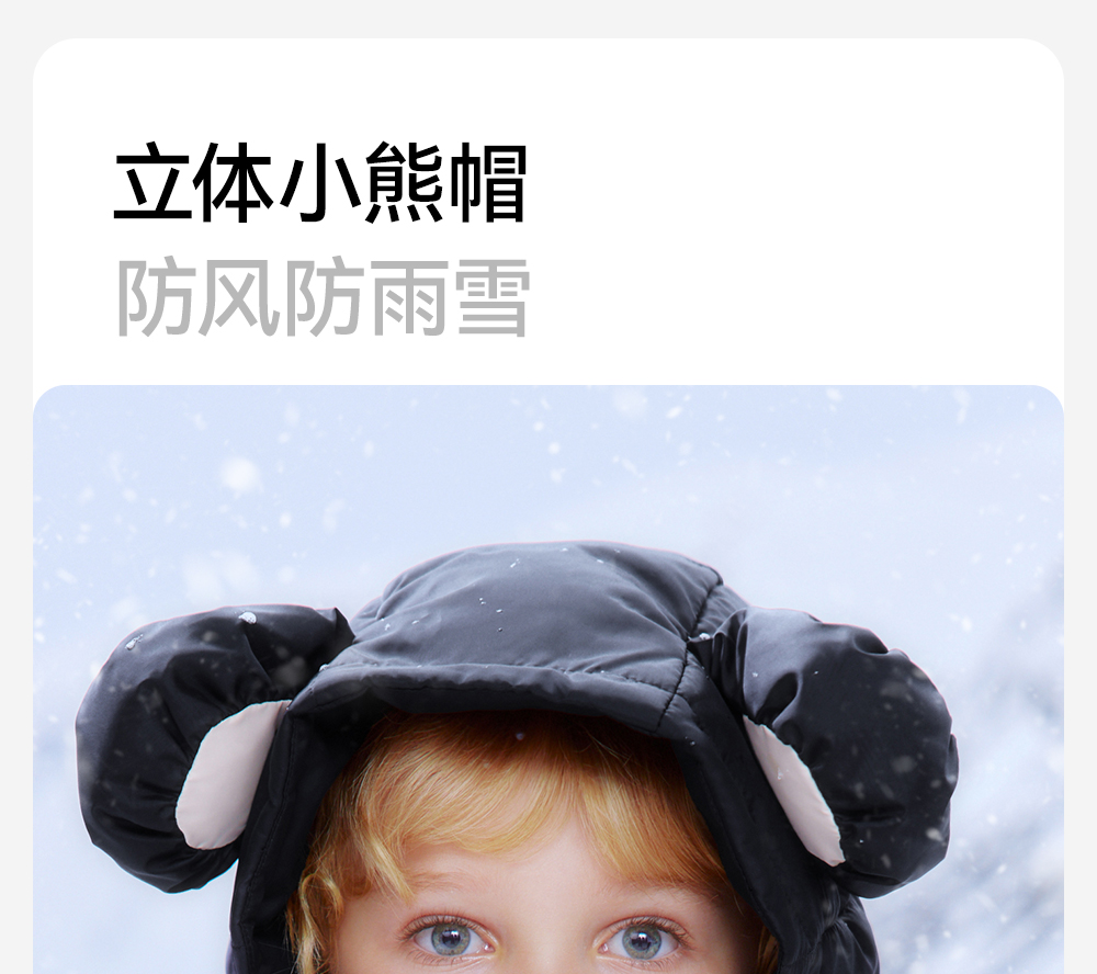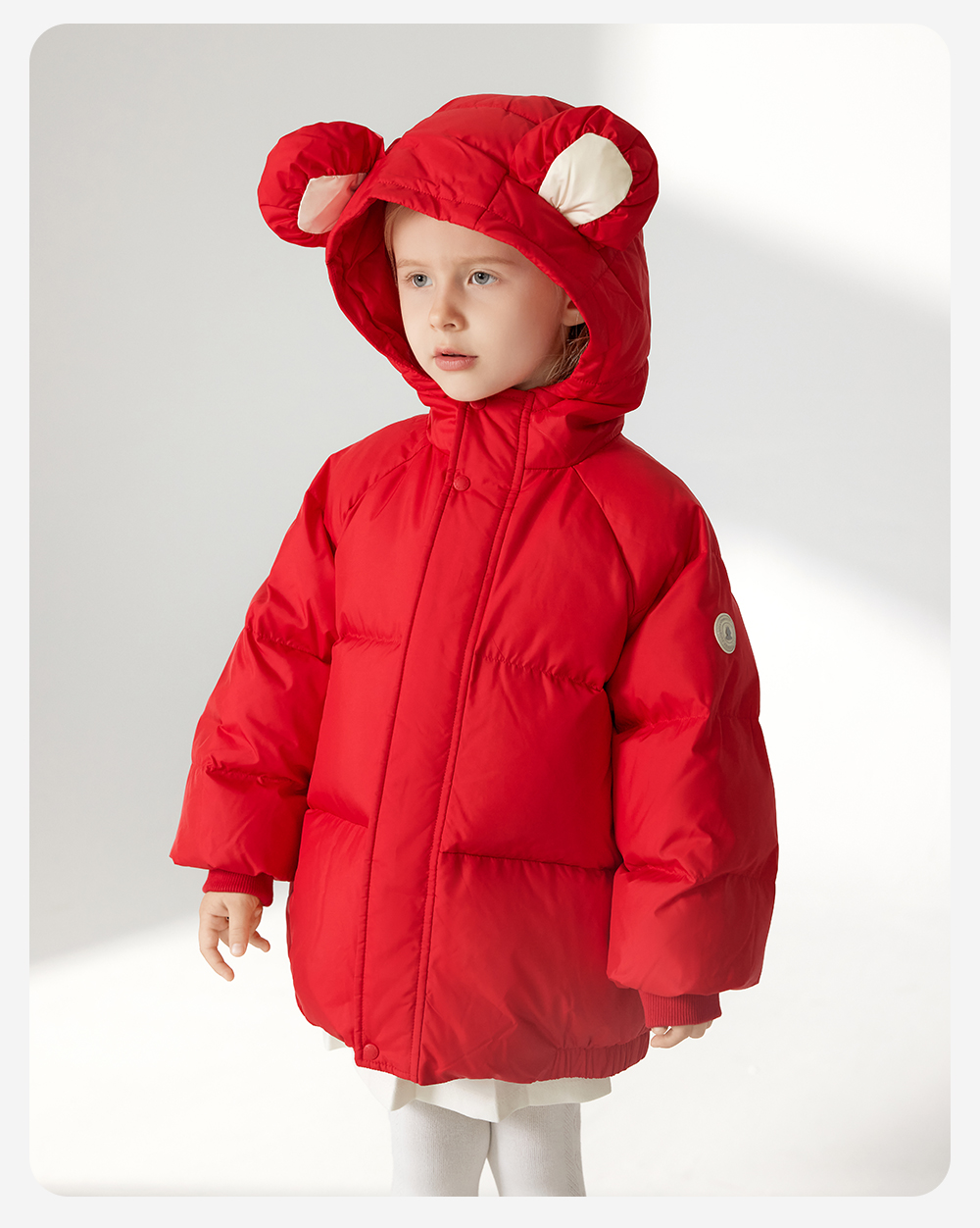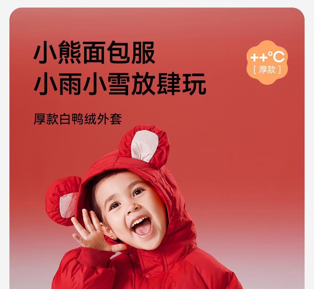 【三防面料】英氏儿童加厚羽绒服外套冬季防寒小熊羽绒服中大童外套新款超韧绒