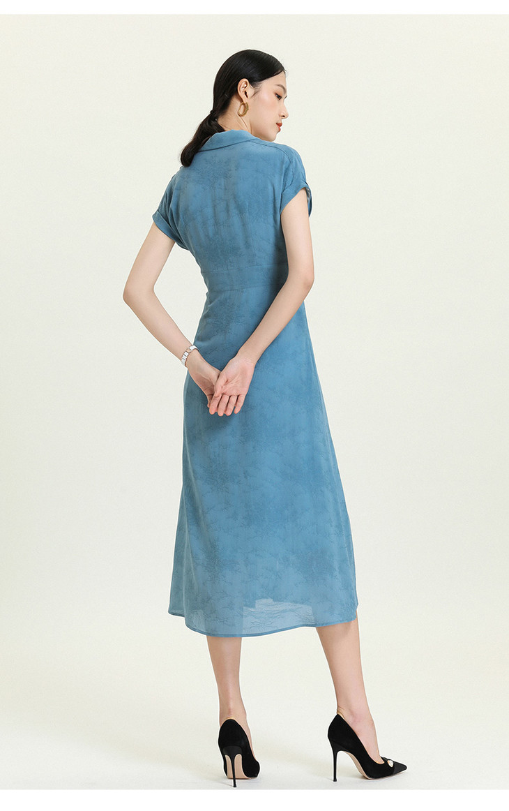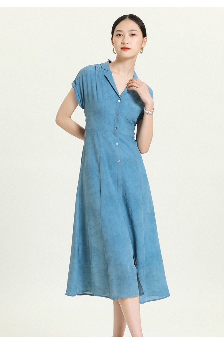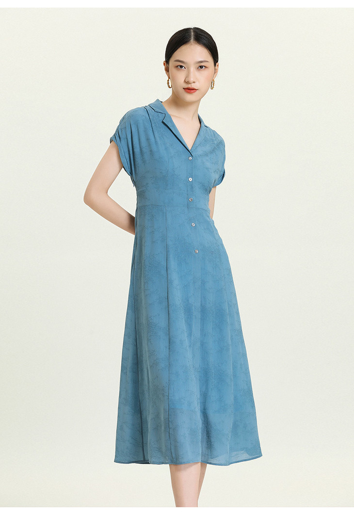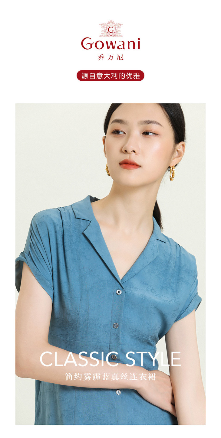 乔万尼夏季桑蚕丝连衣裙女时尚气质简约收腰纯色真丝长裙ES2E188