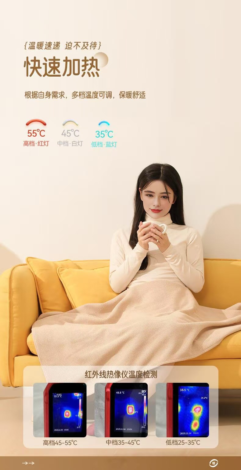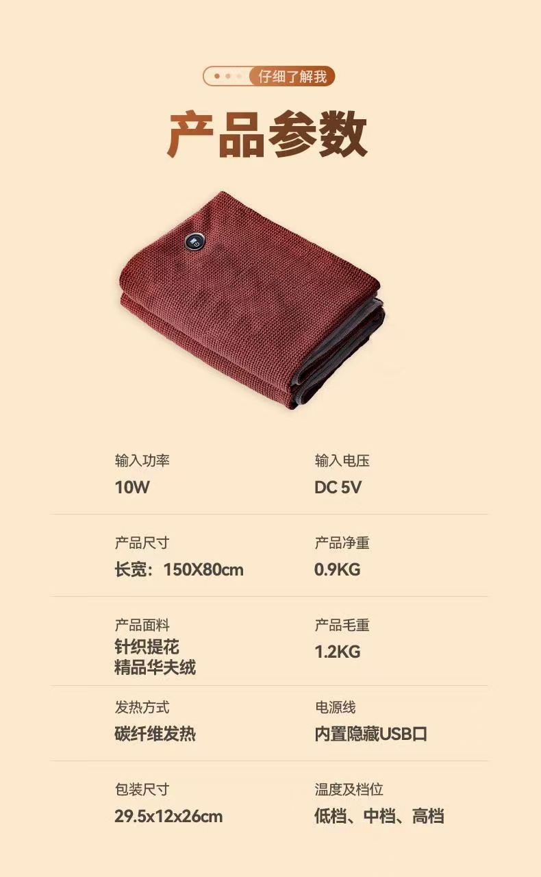 冬季【石墨烯USB加热披毯】护肩护腰护膝加热垫盖毯 远红外热敷养生电热毯