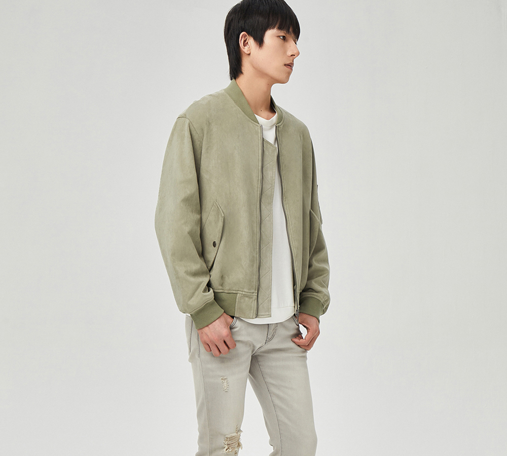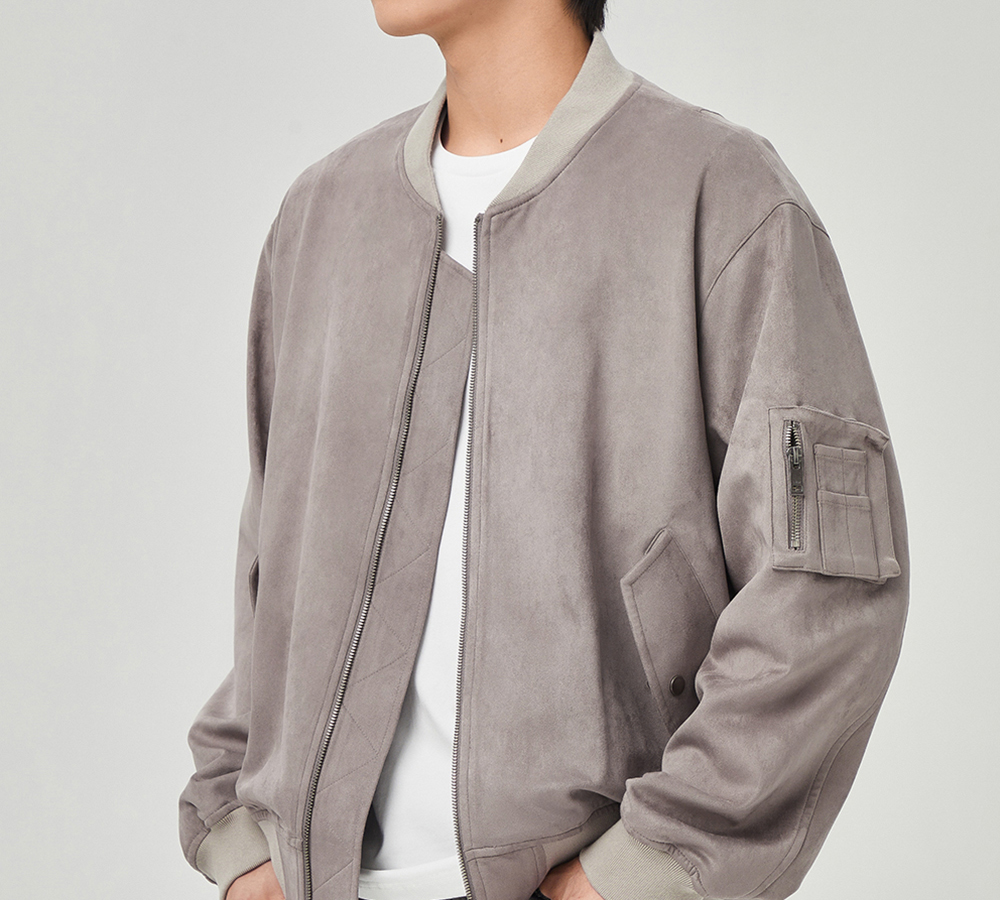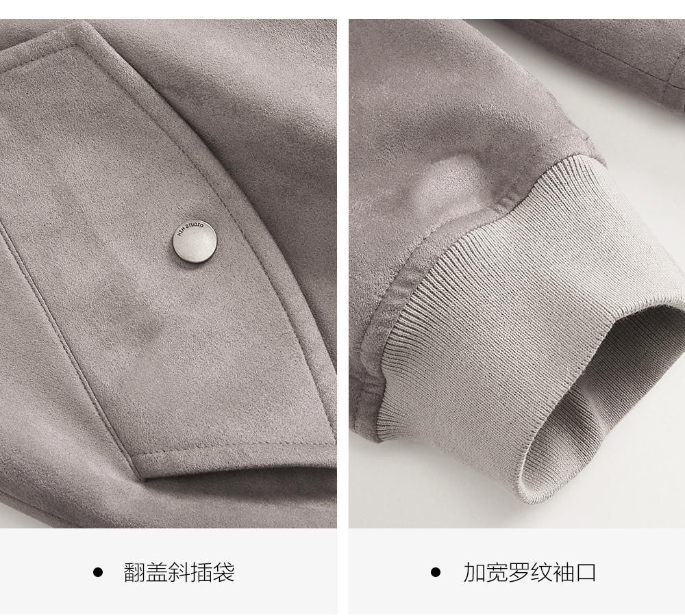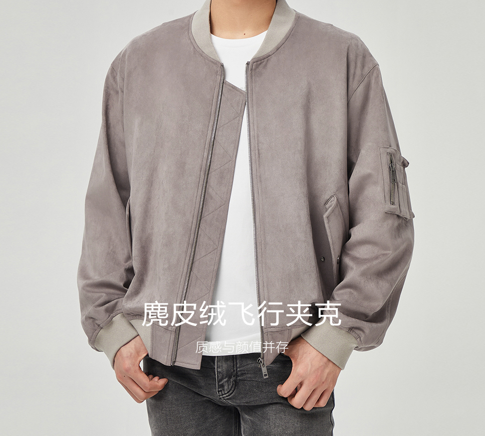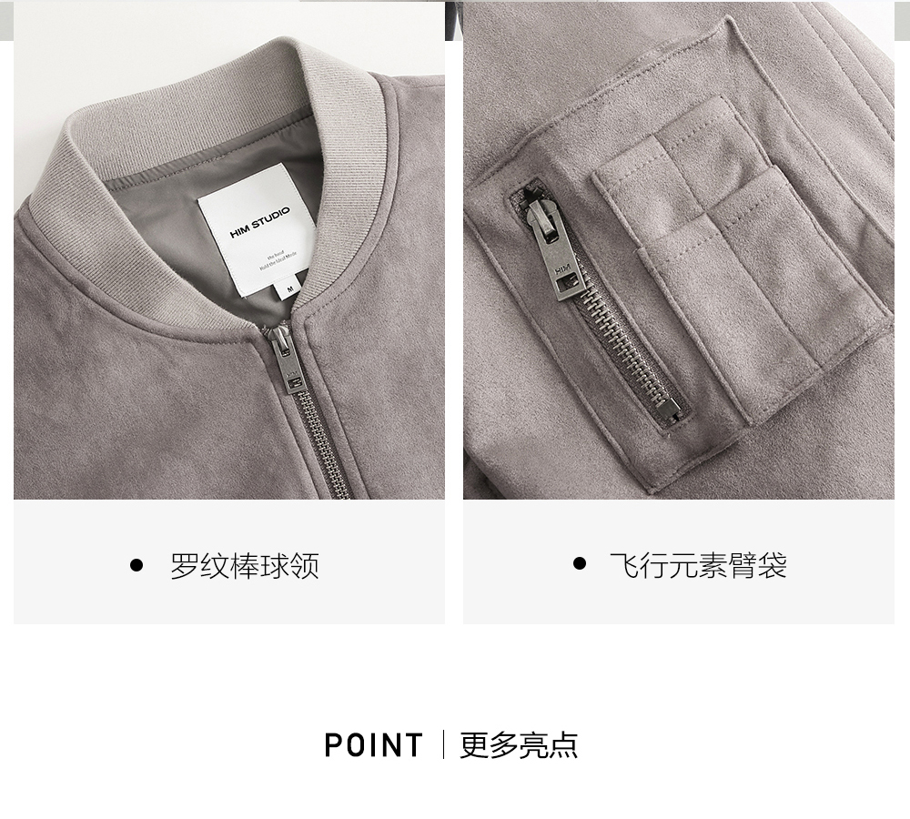 HIM漢崇 麂皮绒棒球服宽松夹克高级感时尚休闲外套 2023秋季新款